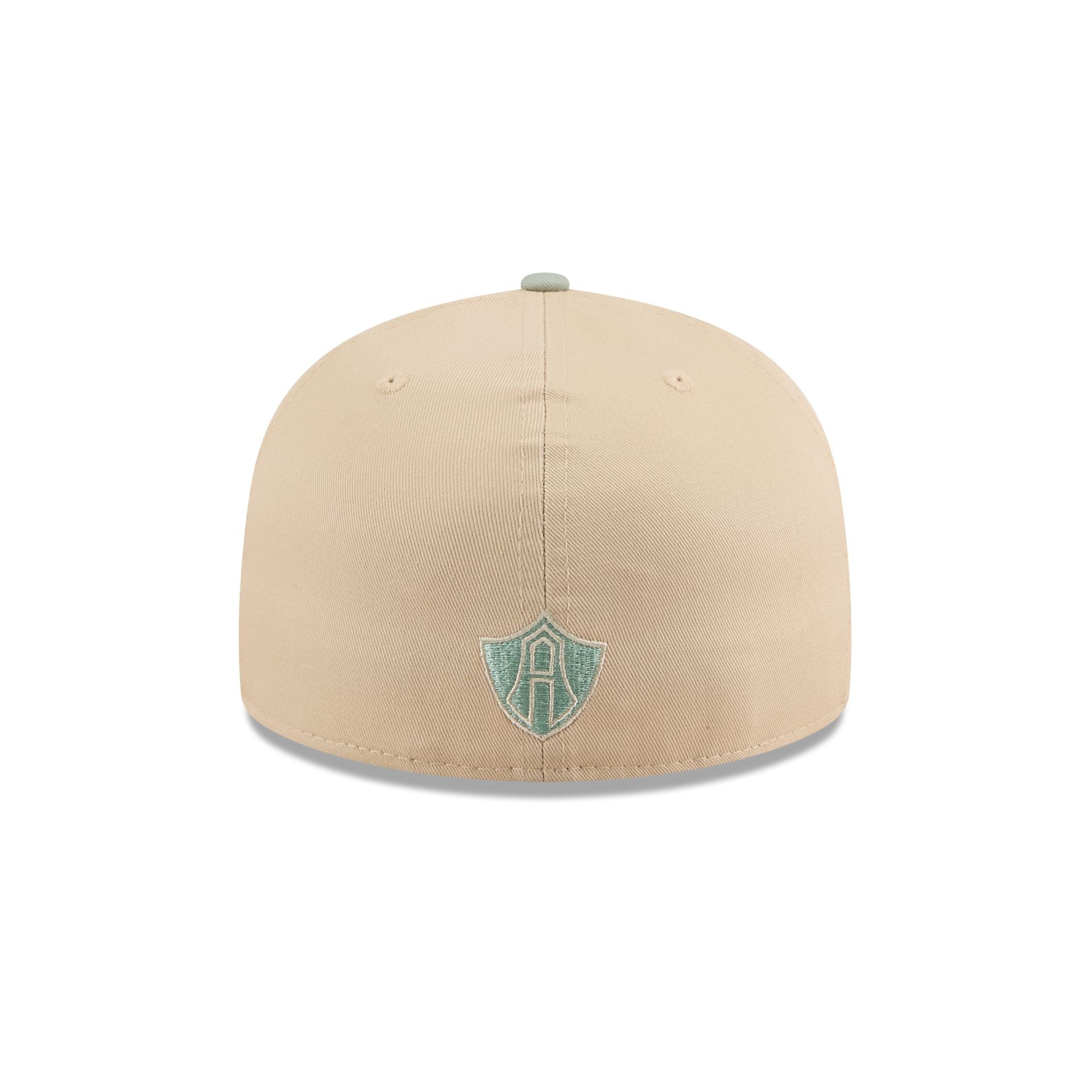The Atlas FC Ivory 59FIFTY Fitted Cap features an embroidered Atlas logo at the front panels with a matching team wordmark at the rear. a pastel green visor. and a gray undervisor.