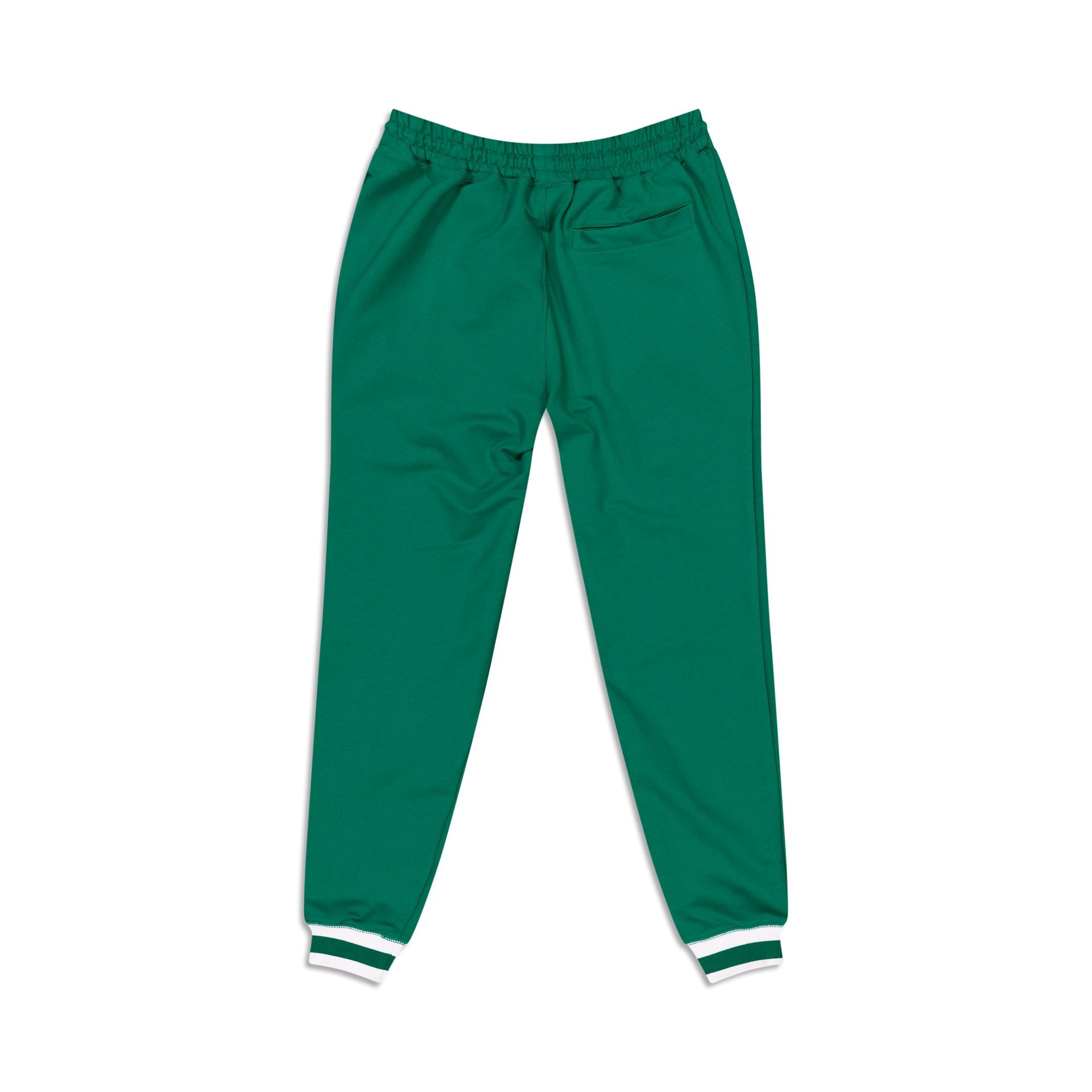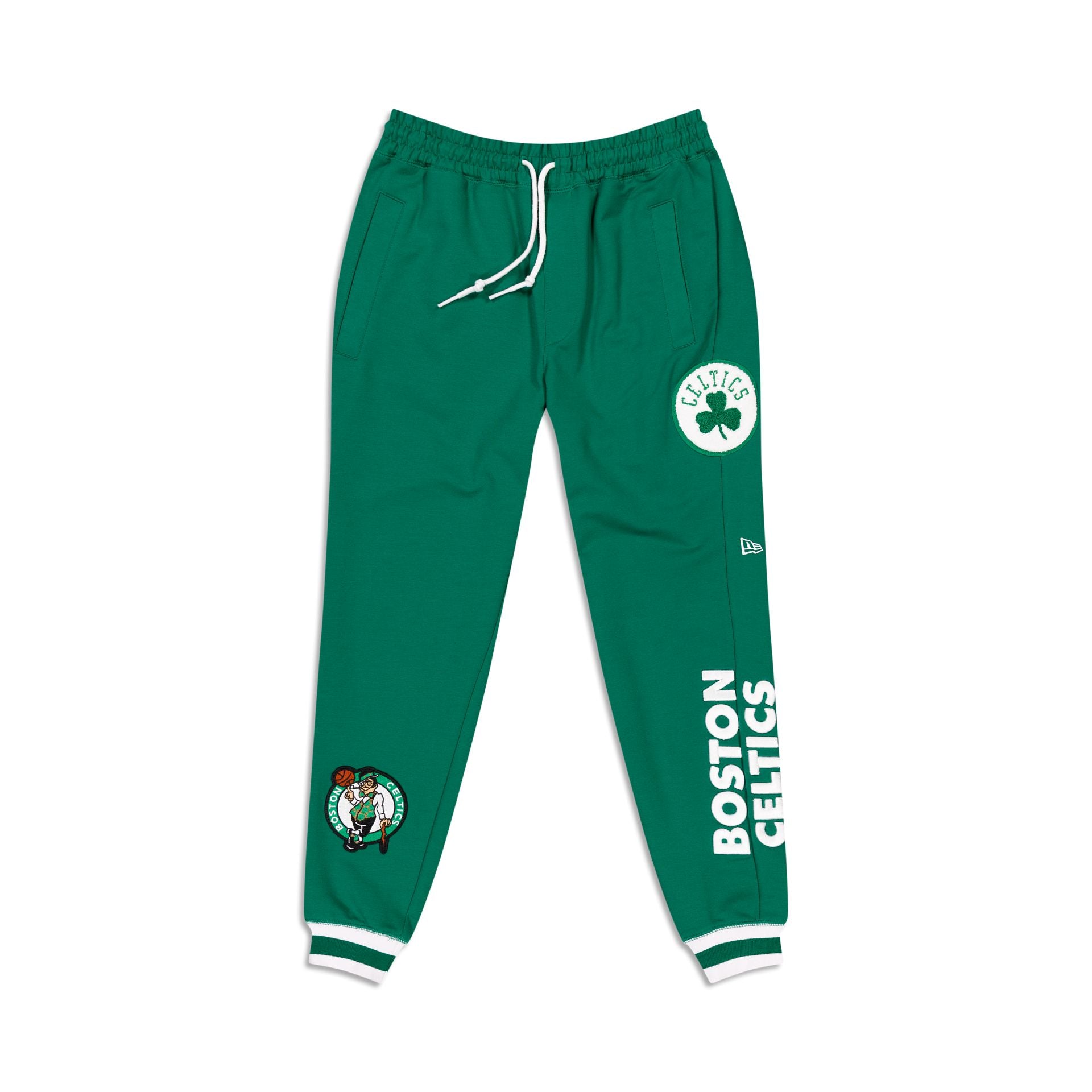 The Boston Celtics Logo Select Jogger features a chenille applique Celtics logo and embroidered wordmark at the left leg with an alternate team logo at the right ankle.