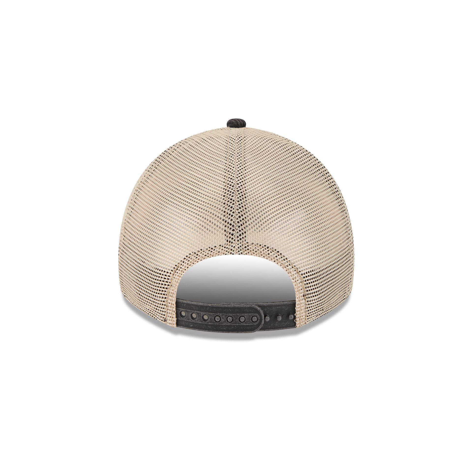 The Chicago Blackhawks Vintage Landscape 9TWENTY A-Frame Trucker features an embroidered Blackhawks Vintage Landscape patch at the front panels with a team logo at the right-wear side. Additional details include an adjustable snapback closure at the rear and a gray undervisor.