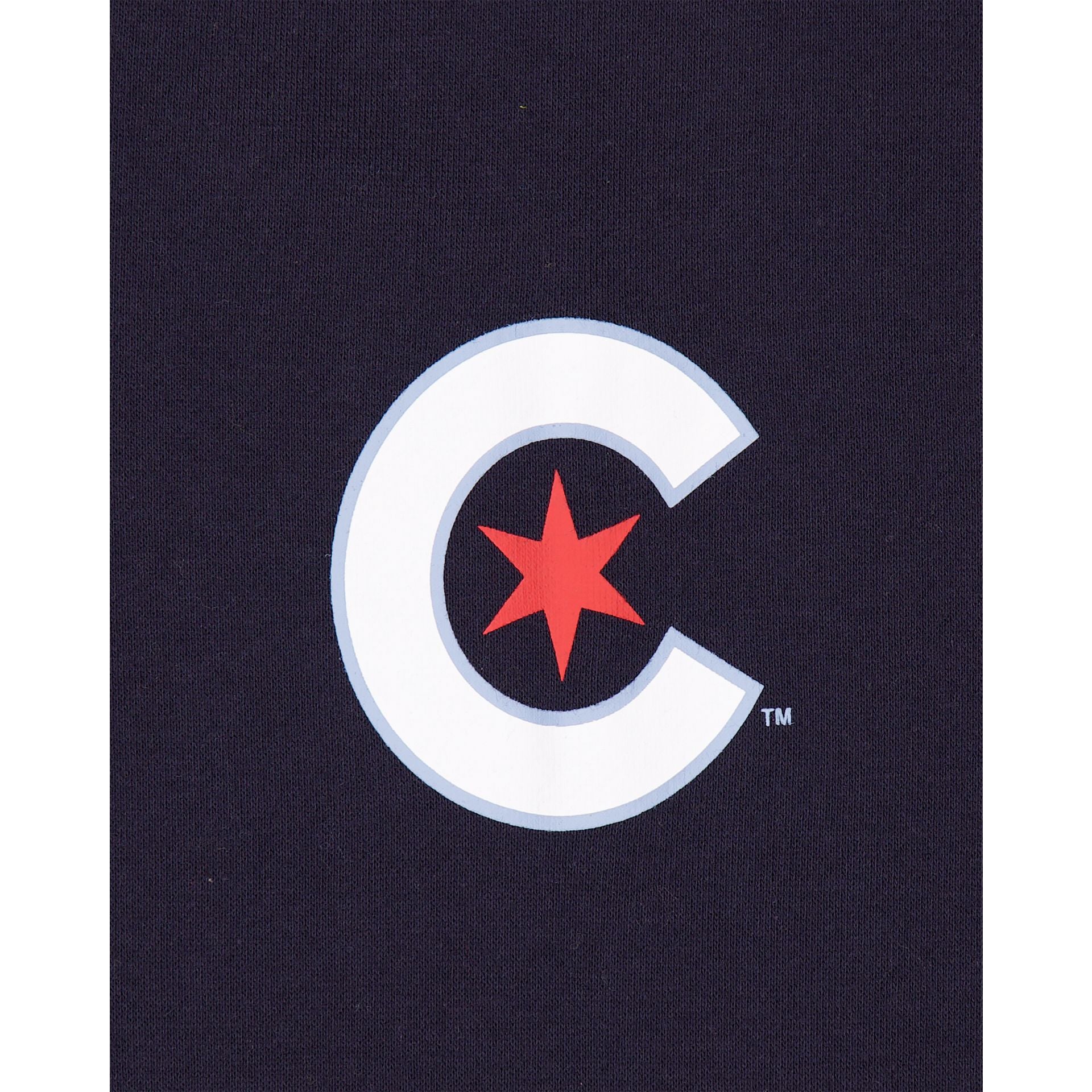 Jersey inspired. city connected. The Chicago Cubs City Connect Navy Hoodie features a screen-printed Cubs wordmark and logo at the front with an alternate team logo at the left-wear sleeve.