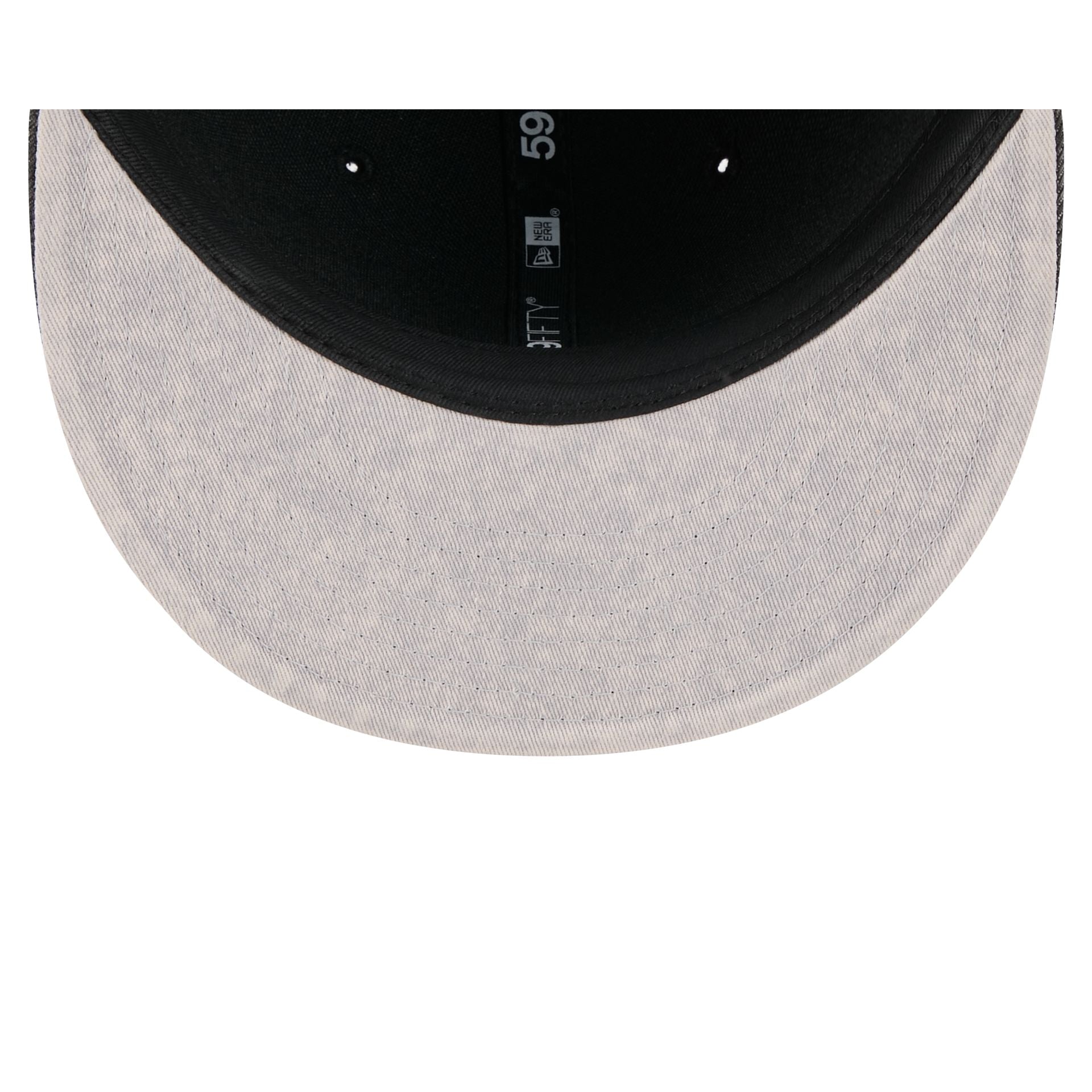 The Chicago White Sox Sport Classics Pastel 59FIFTY Fitted Cap features an embroidered White Sox wordmark at the front panels with a matching MLB Batterman logo at the rear. Additional details include a team logo at the right-wear side. a washed pastel fabrication throughout the cap. and a gray undervisor.