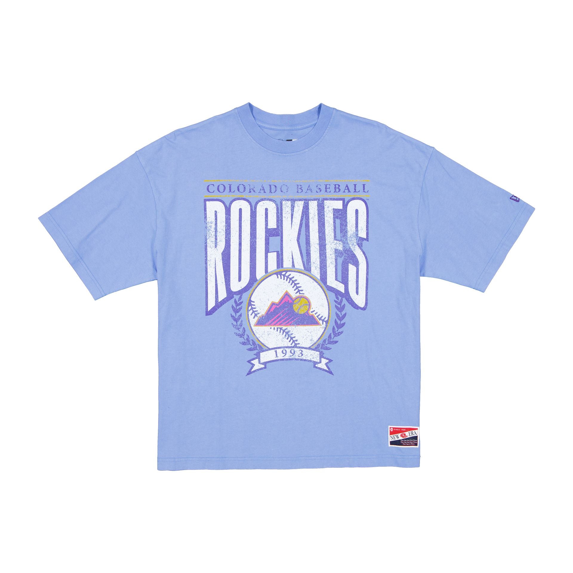 The Colorado Rockies City Connect Distressed T-Shirt features a screen-printed Rockies graphic at the front.