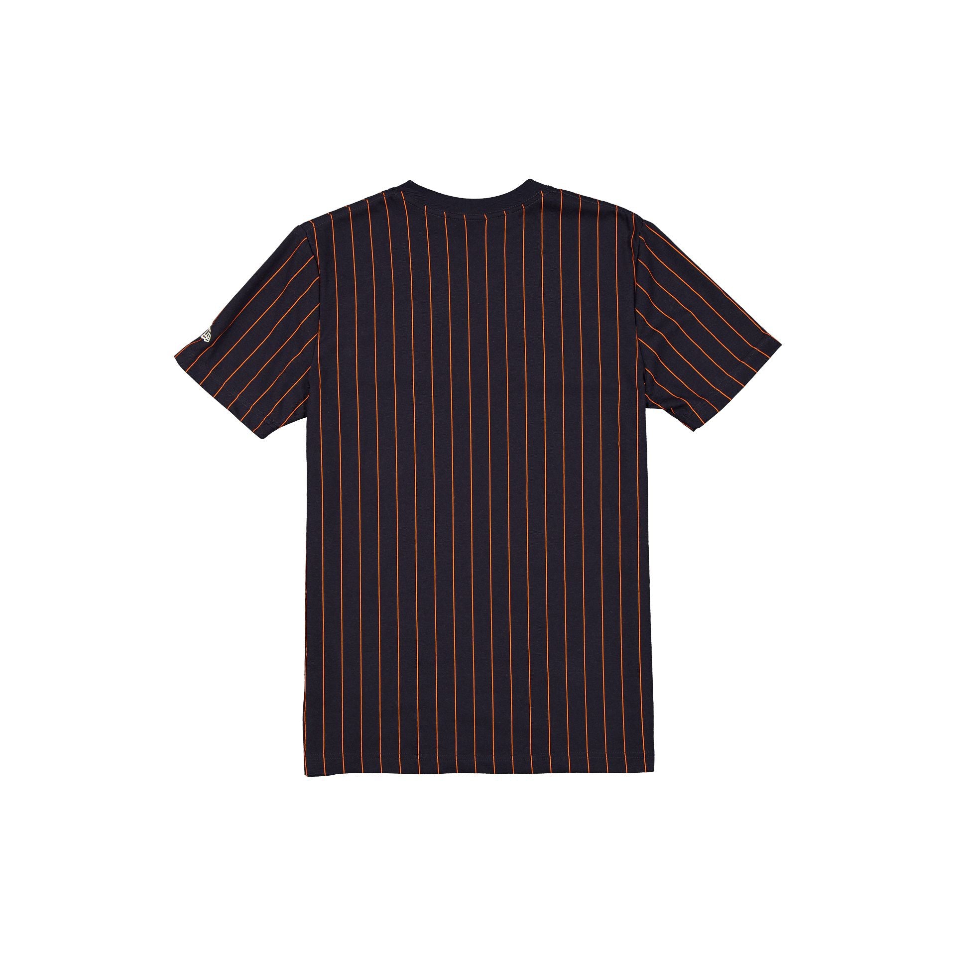 The Denver Broncos Throwback Retro Pinstripe T-Shirt features an embroidered Broncos wordmark at the front with a twill applique logo at the left chest.