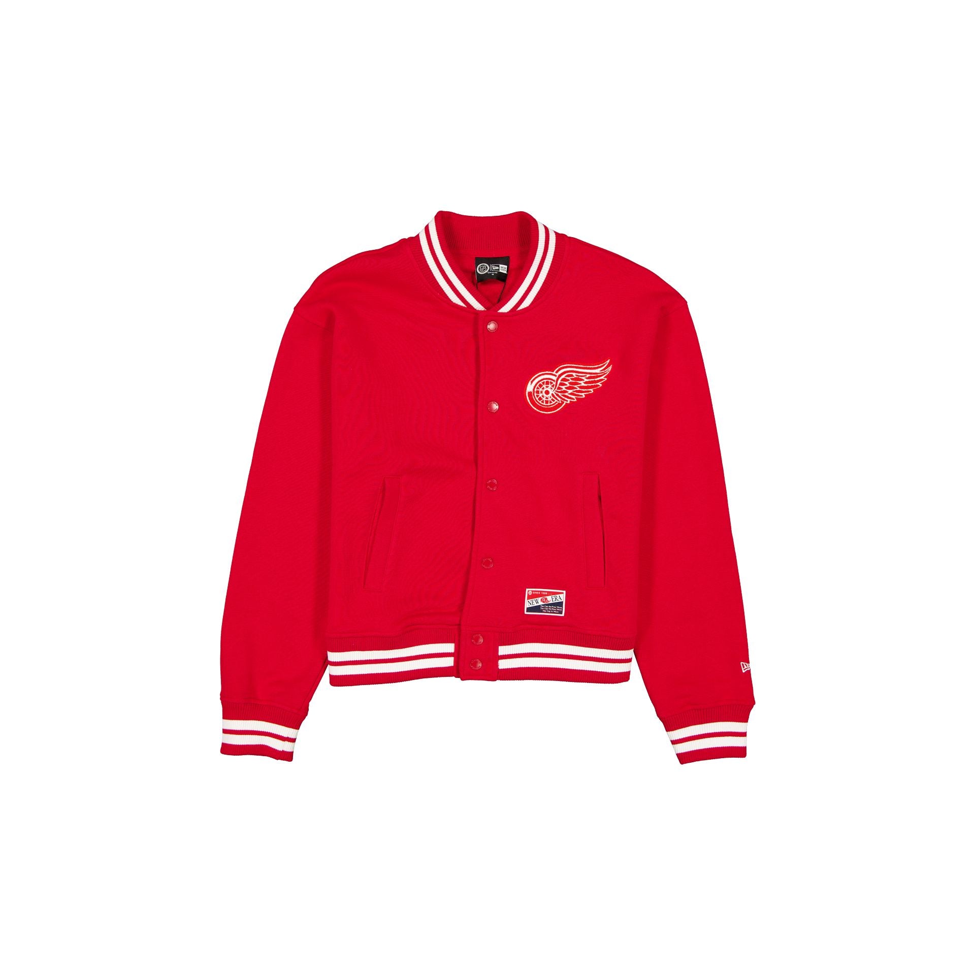 The Detroit Red Wings Throwback Women’s Snap Front Jacket features a chenille Red Wings logo at the left chest a snap button closure and front pockets.