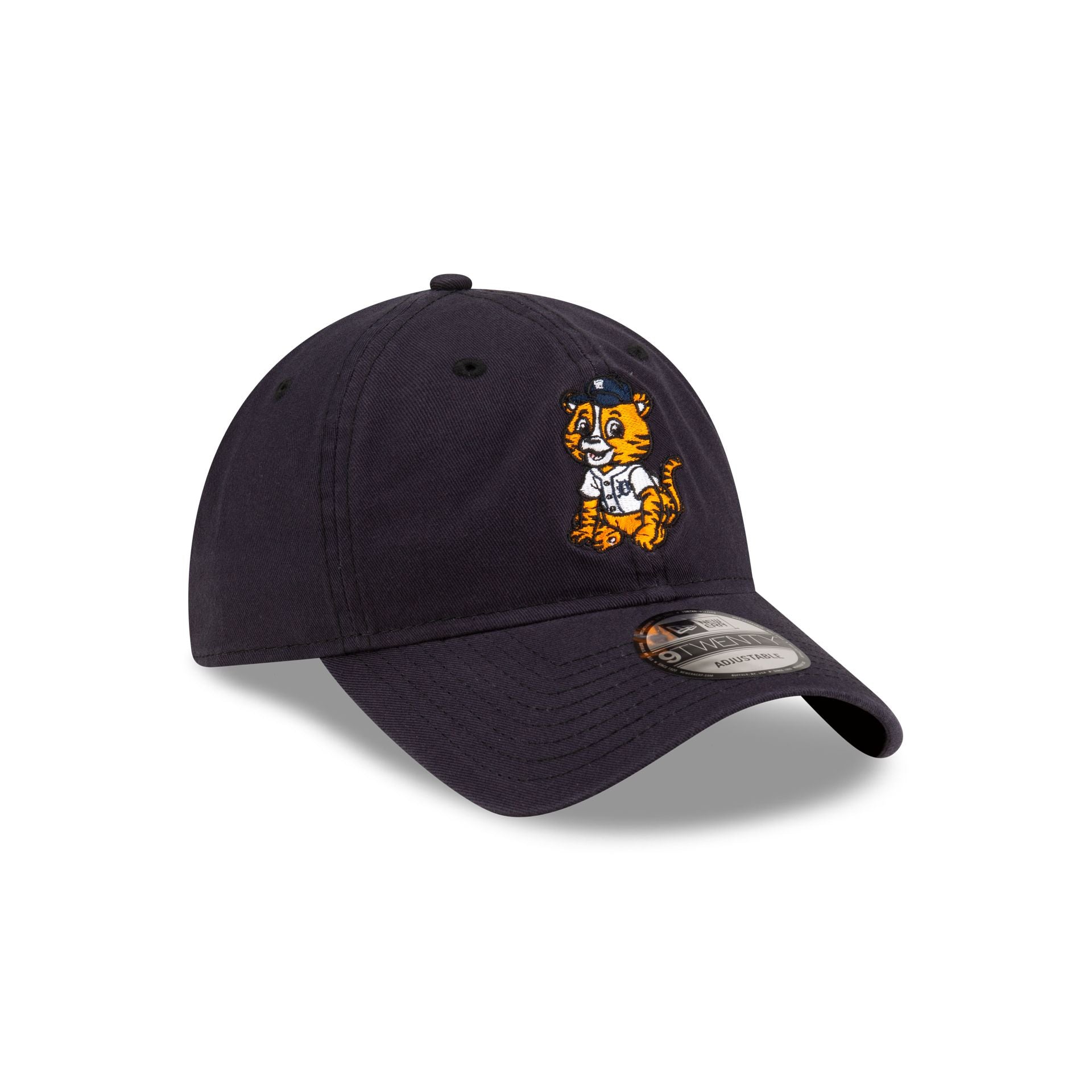 The Detroit Tigers Mini Mascot 9TWENTY Adjustable Cap features an embroidered Tigers mascot at the front panels with a matching New Era Flag at the left-wear side and an adjustable D-Ring closure at the rear.