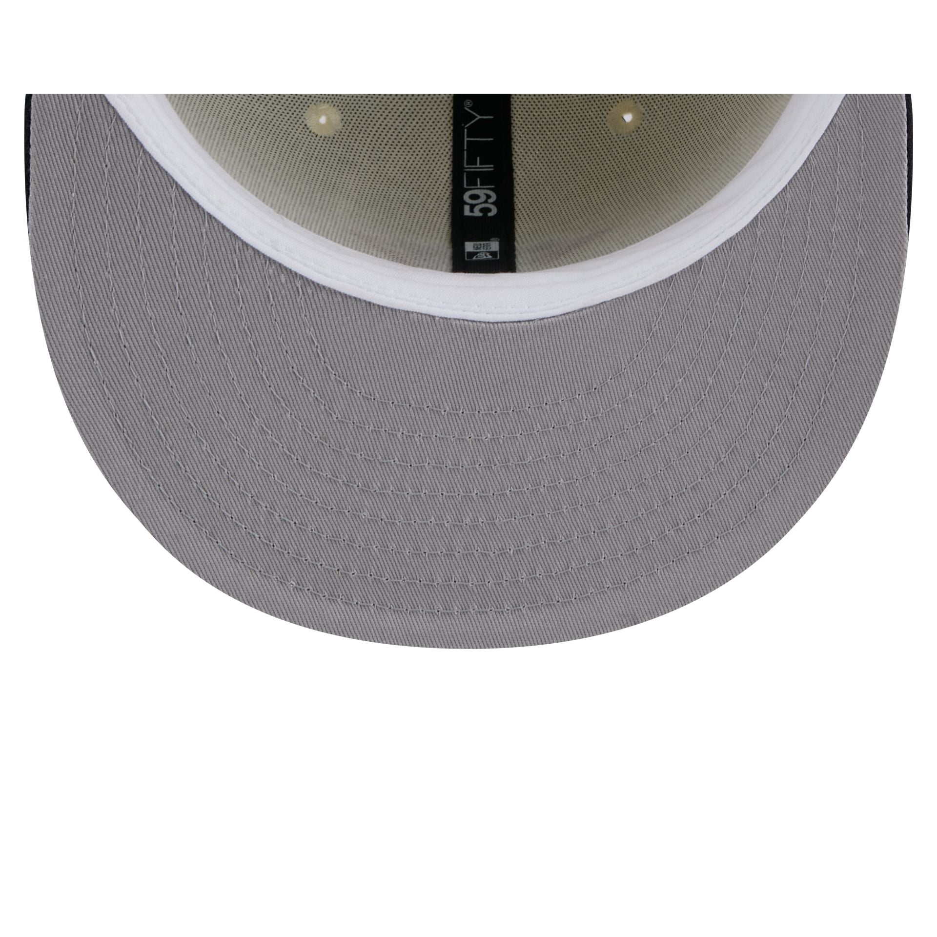The Houston Astros Chrome 59FIFTY Fitted Cap features an embroidered Astros logo at the front panels with a matching MLB Batterman logo at the rear. a navy visor. and a gray undervisor.