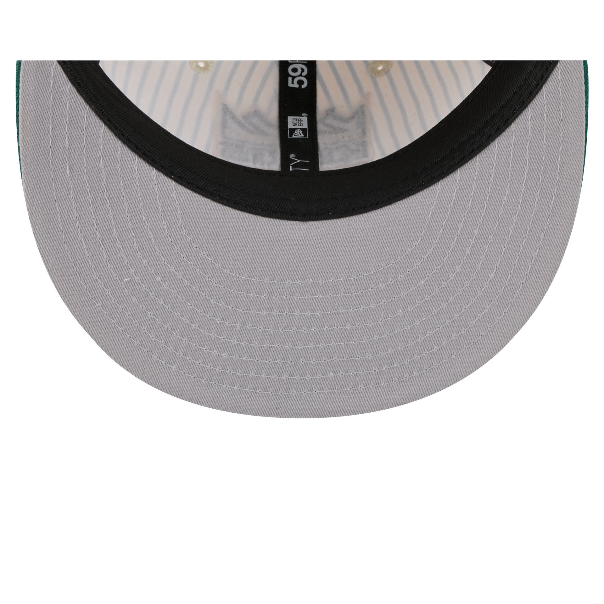 The Just Caps Seersucker Sacramento Kings Retro Crown 59FIFTY Fitted Cap features an embroidered Kings green and bronze logo at the front panels against a seersucker fabrication throughout the cap. Additional details include matching NBA Logoman at the rear and a gray undervisor.