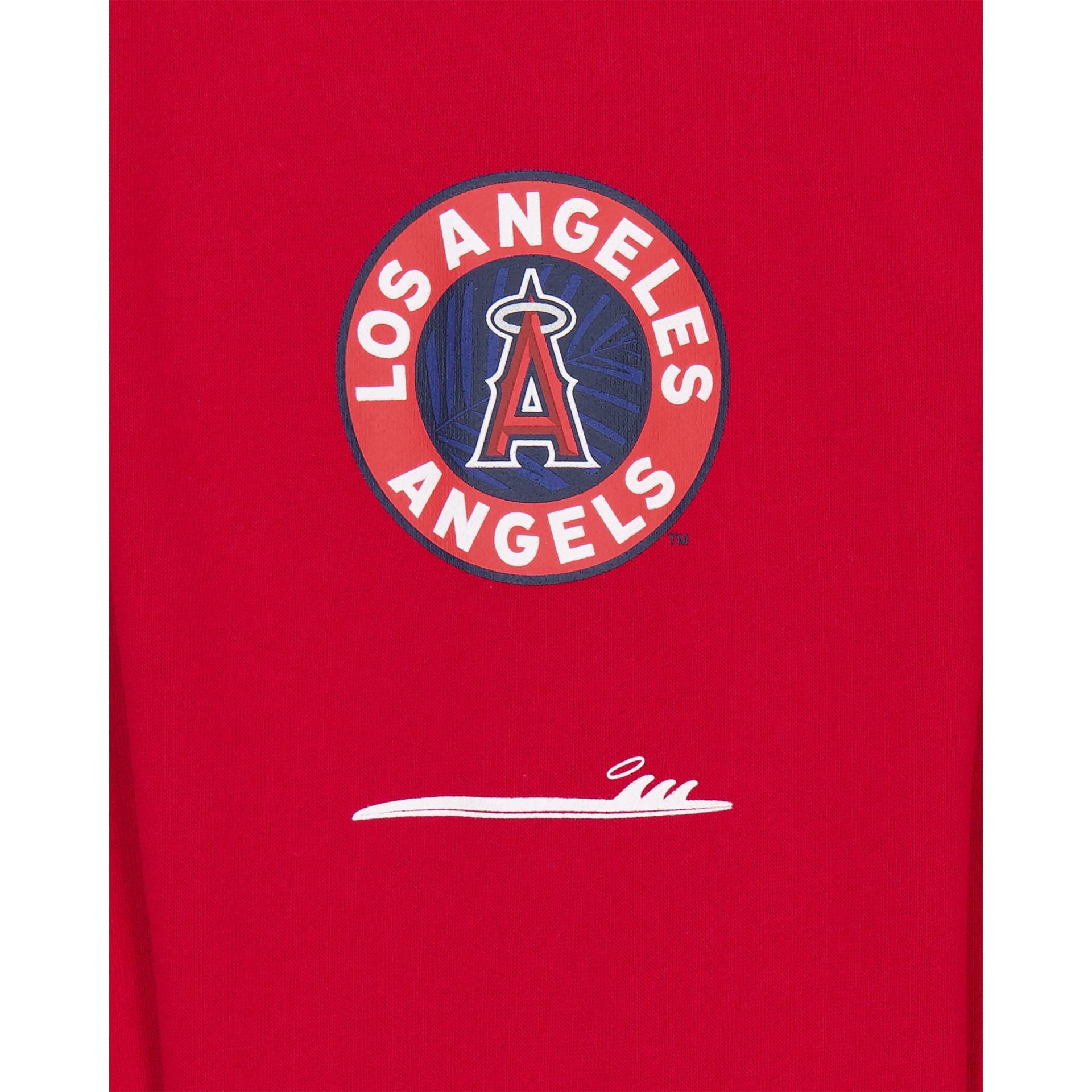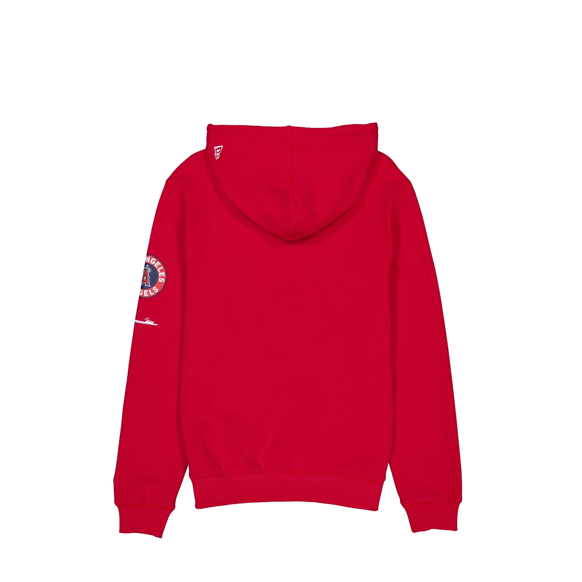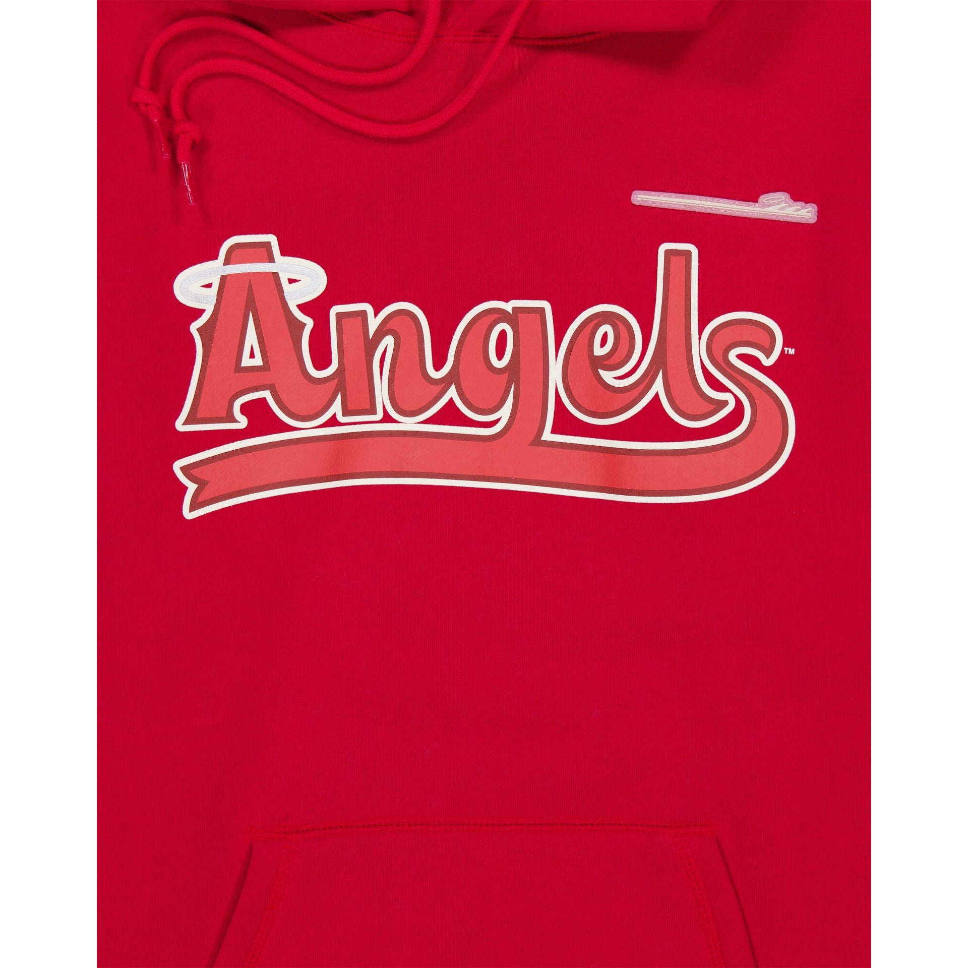 Jersey inspired. city connected. The Los Angeles Angels City Connect Red Hoodie features a screen-printed Angels wordmark and logo at the front with alternate team logos at the left sleeve.