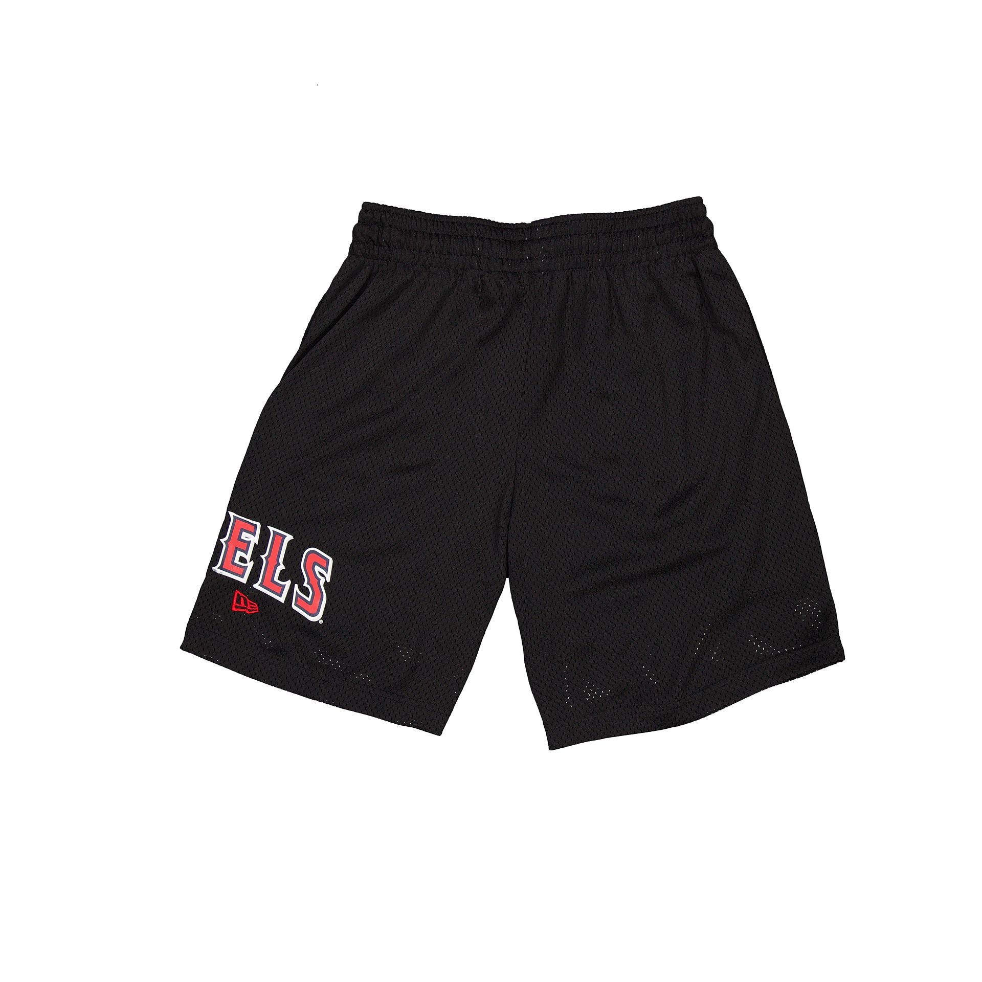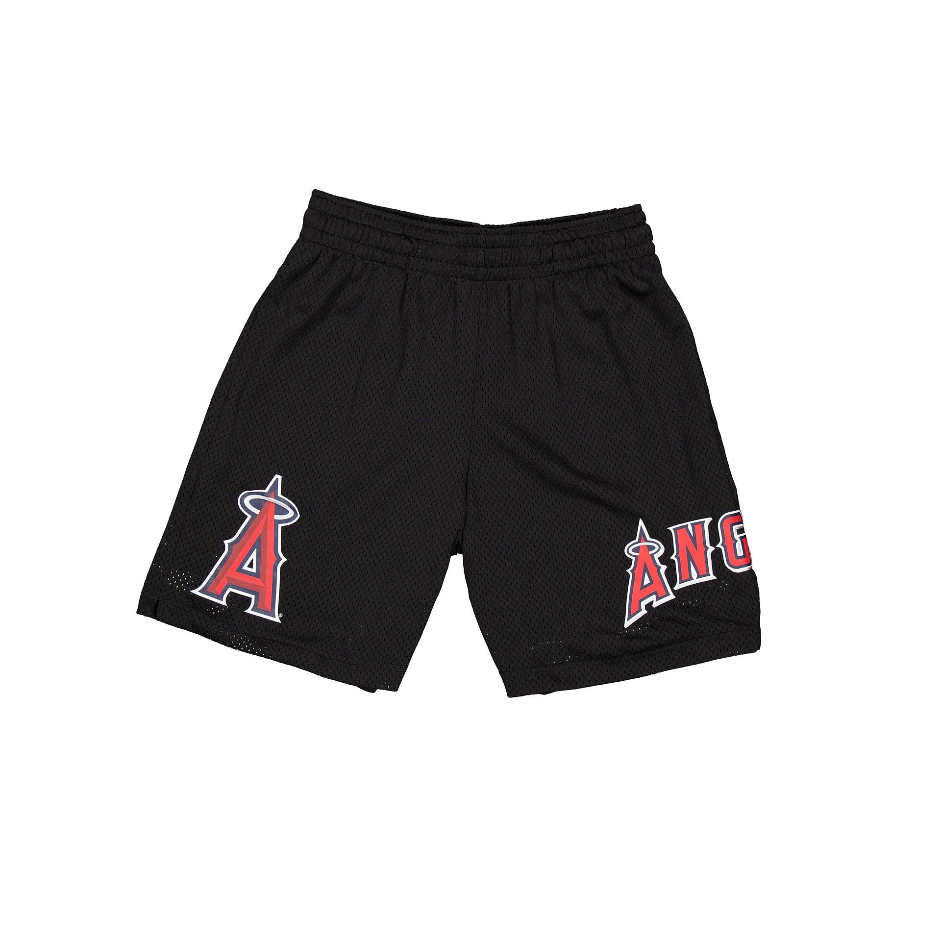 The Los Angeles Angels Mesh Shorts features a screen-printed Angels logo at the left leg with a team wordmark at the right leg.