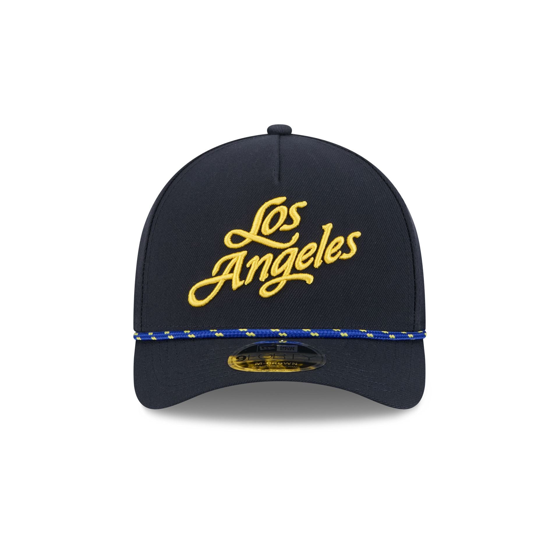 Wear the colors of the Los Angeles night sky. The Los Angeles Rams 2025 NFL Rivalries 9FORTY M-Crown A-Frame Snapback features an embroidered Rams Rivalries logo at the front panels with a rope at the visor. Additional details include a team patch at the right-wear side and the NFL Shield logo above an adjustable snapback closure at the rear.