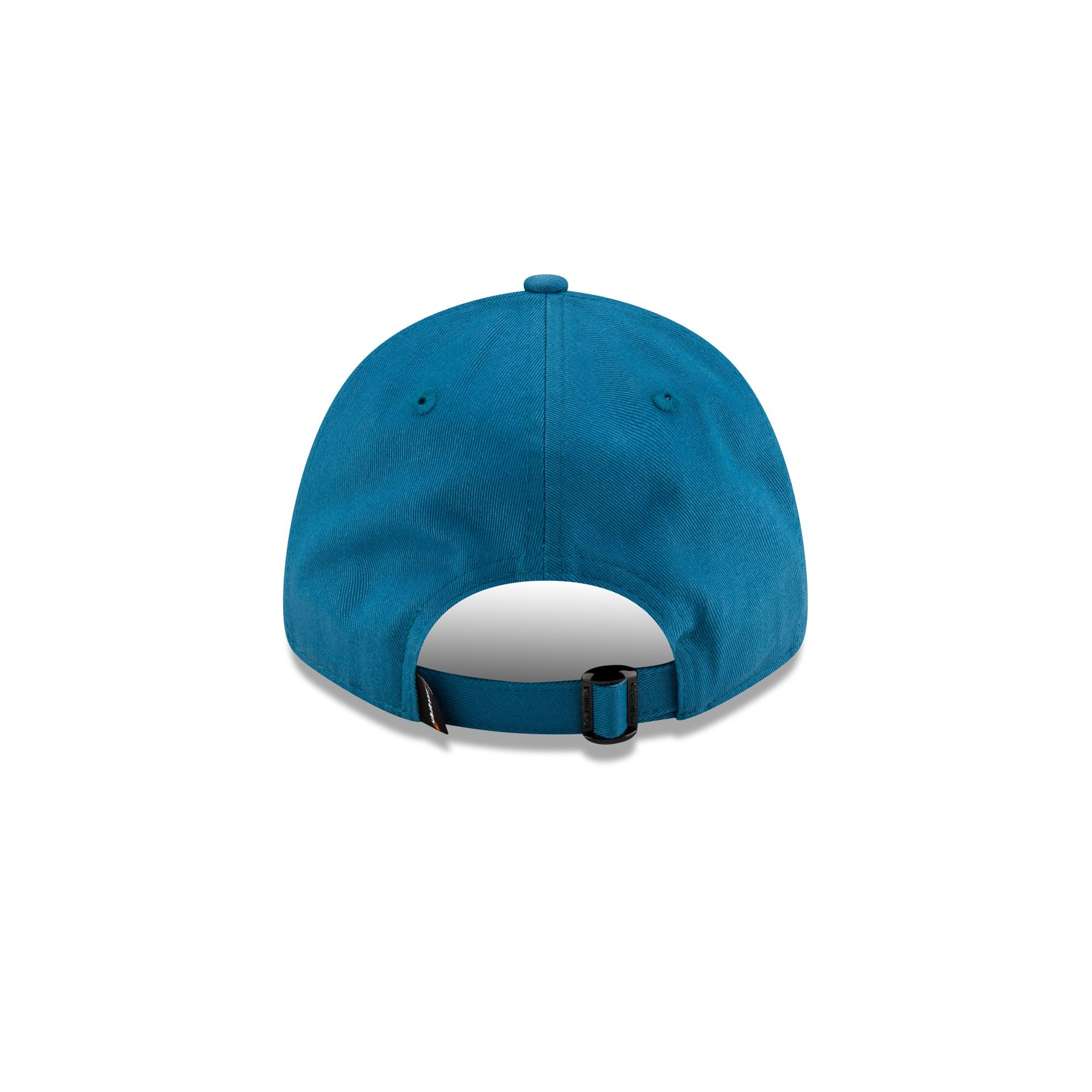 The McLaren Formula 1 Team Graphic Patch Teal 9FORTY Adjustable Cap features a woven McLaren Racing patch at the front panels with a teal undervisor and a woven team tag the adjustable D-Ring closure at the rear.