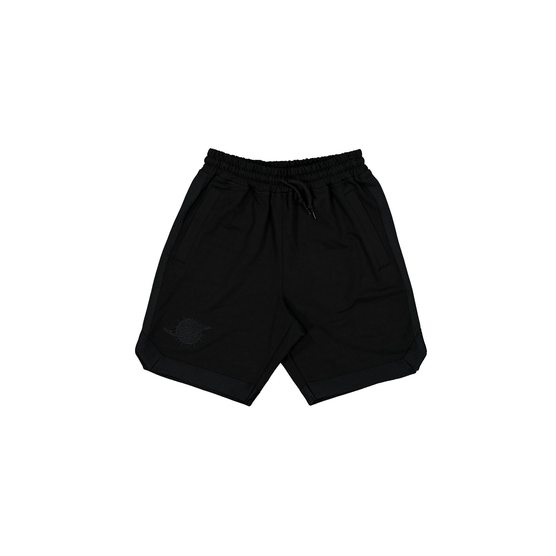 The Miami Dolphins Black on Black Logo Select Shorts features an embroidered Dolphins logo at the right-wear leg and a satin applique with a tonal stitch team wordmark at the rear left leg.