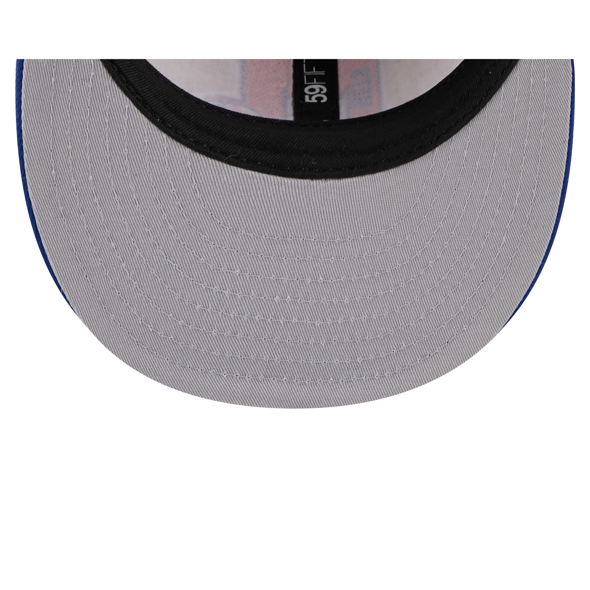 The New York Mets Wool Letterman Retro Crown 59FIFTY Fitted Cap features an embroidered loop Mets Cooperstown logo at the front panels and an additional logo at the rear. Additional details include a wool fabrication throughout the cap and a gray undervisor.