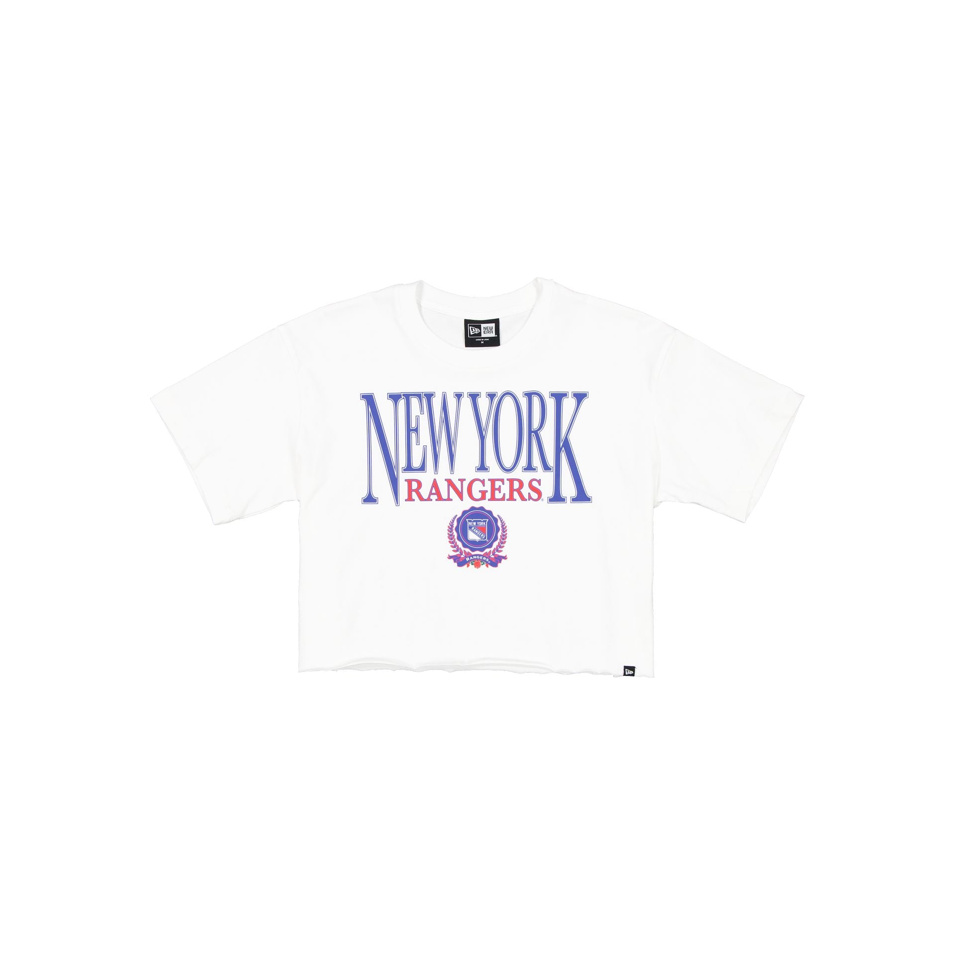 The New York Rangers Throwback Prep Women’s Cropped T-Shirt features a screen-printed Rangers wordmark above a team emblem at the front.