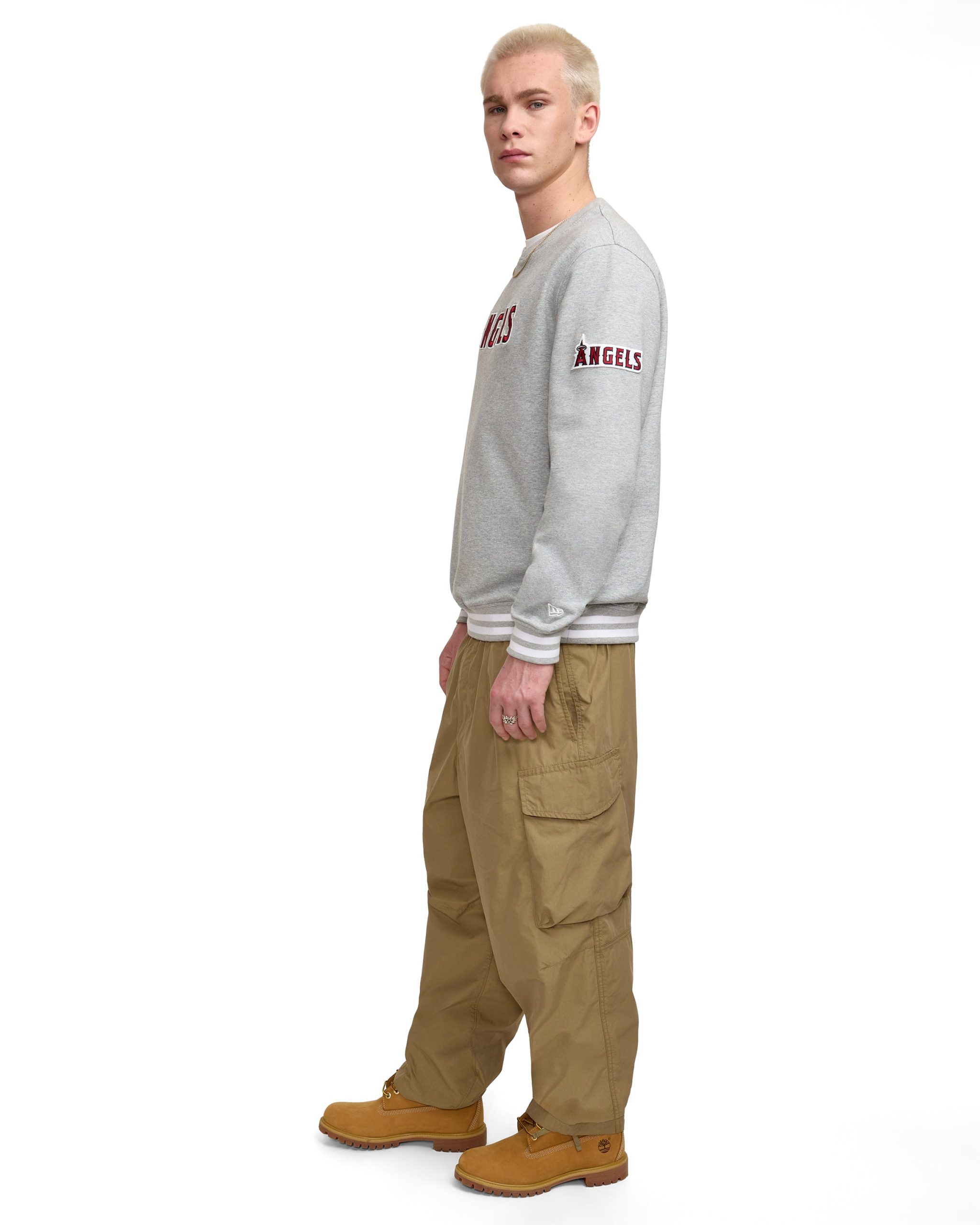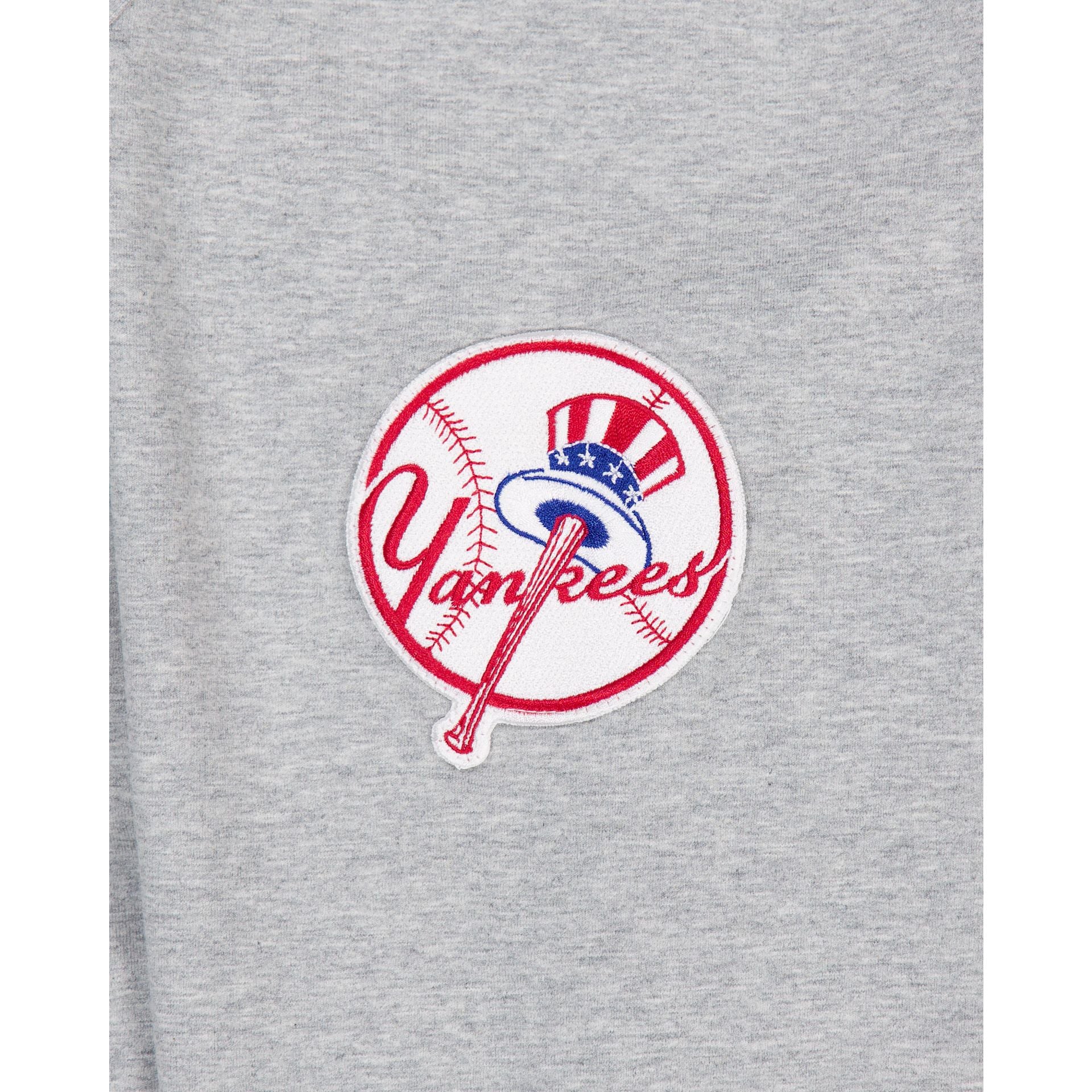 The New York Yankees Gray Logo Select Crewneck features an embroidered Yankees wordmark at the front panels with a matching team logo patch at the left arm and a 2009 World Series patch at the right arm.
