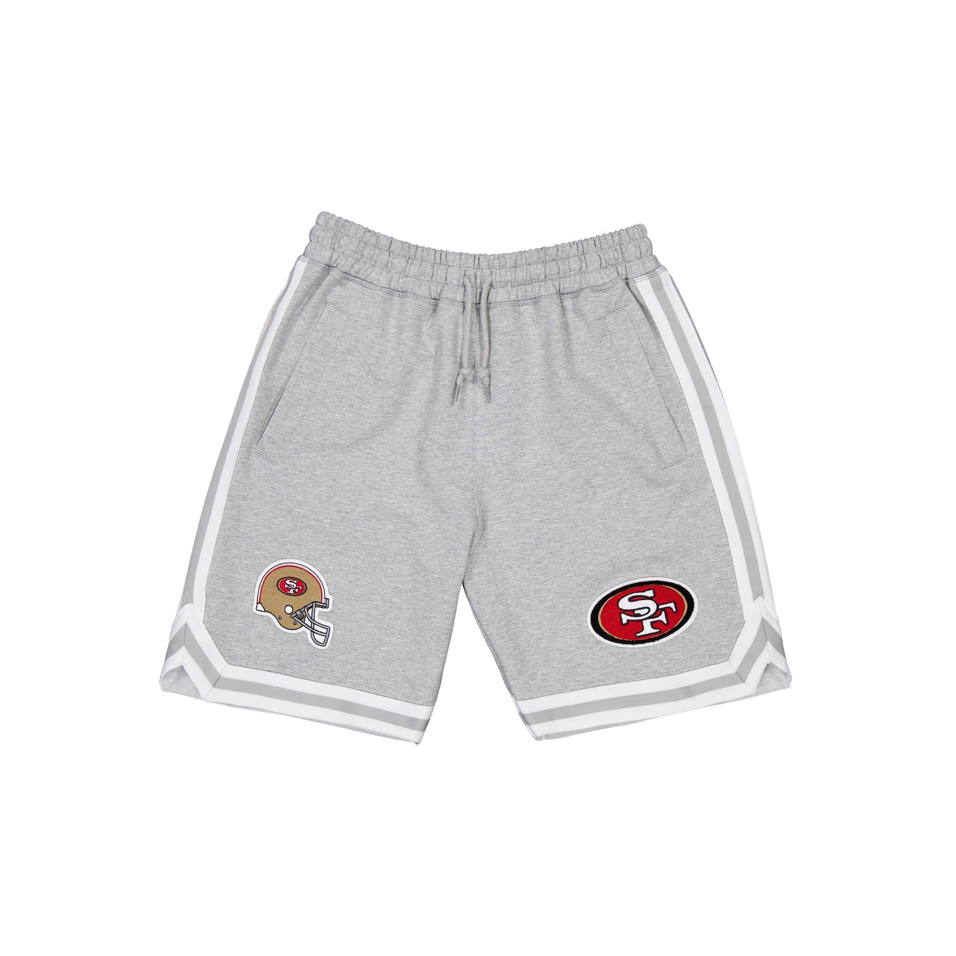 The San Francisco 49ers Gray Logo Select Shorts features a chenille applique 49ers logo at the left leg with an alternate team logo patch embroidered at the right leg.