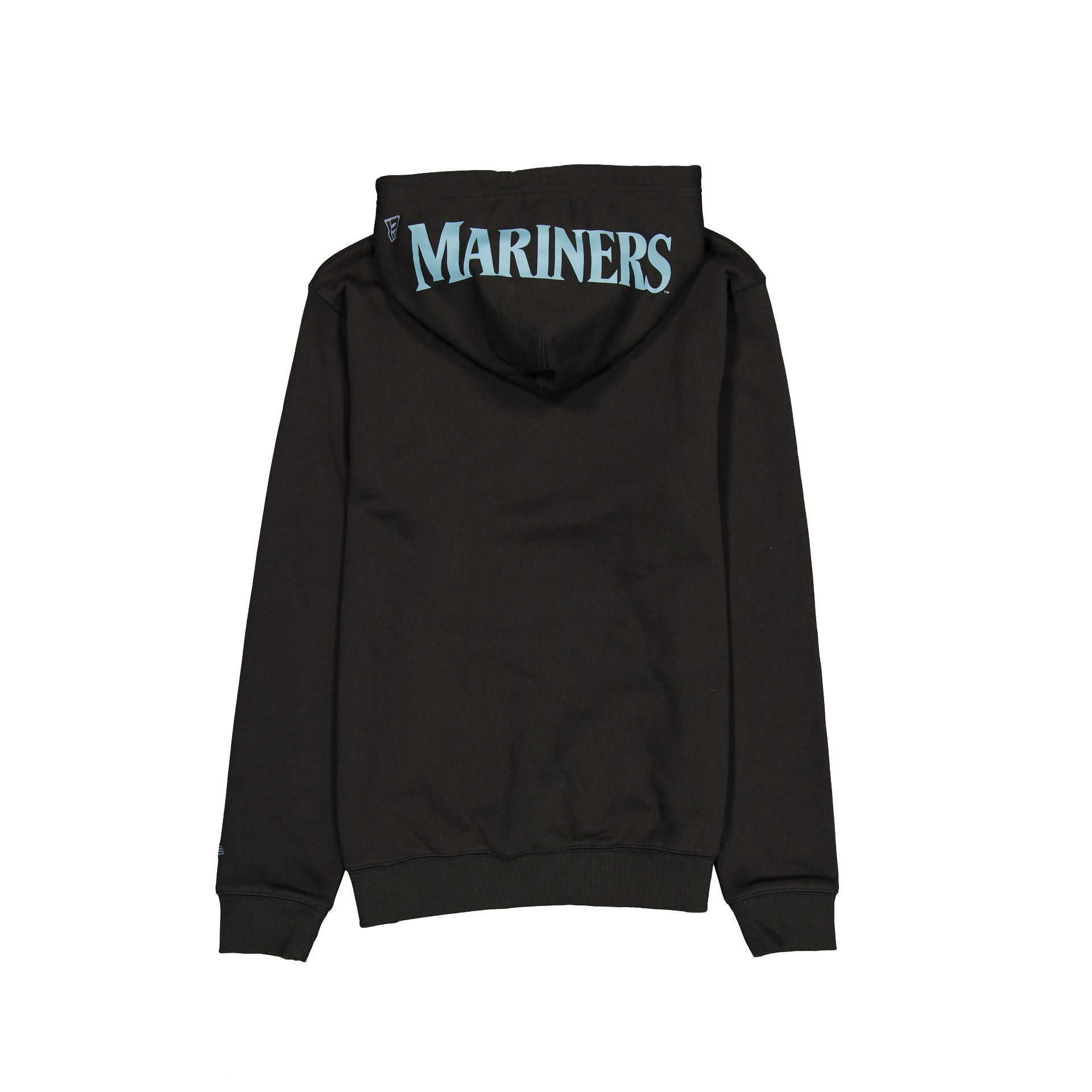The Seattle Mariners Black Realtree Hoodie features an embroidered Mariners reflective ink Realtree applique with kangaroo pockets. blue Realtree lining. and a team wordmark at the hood.