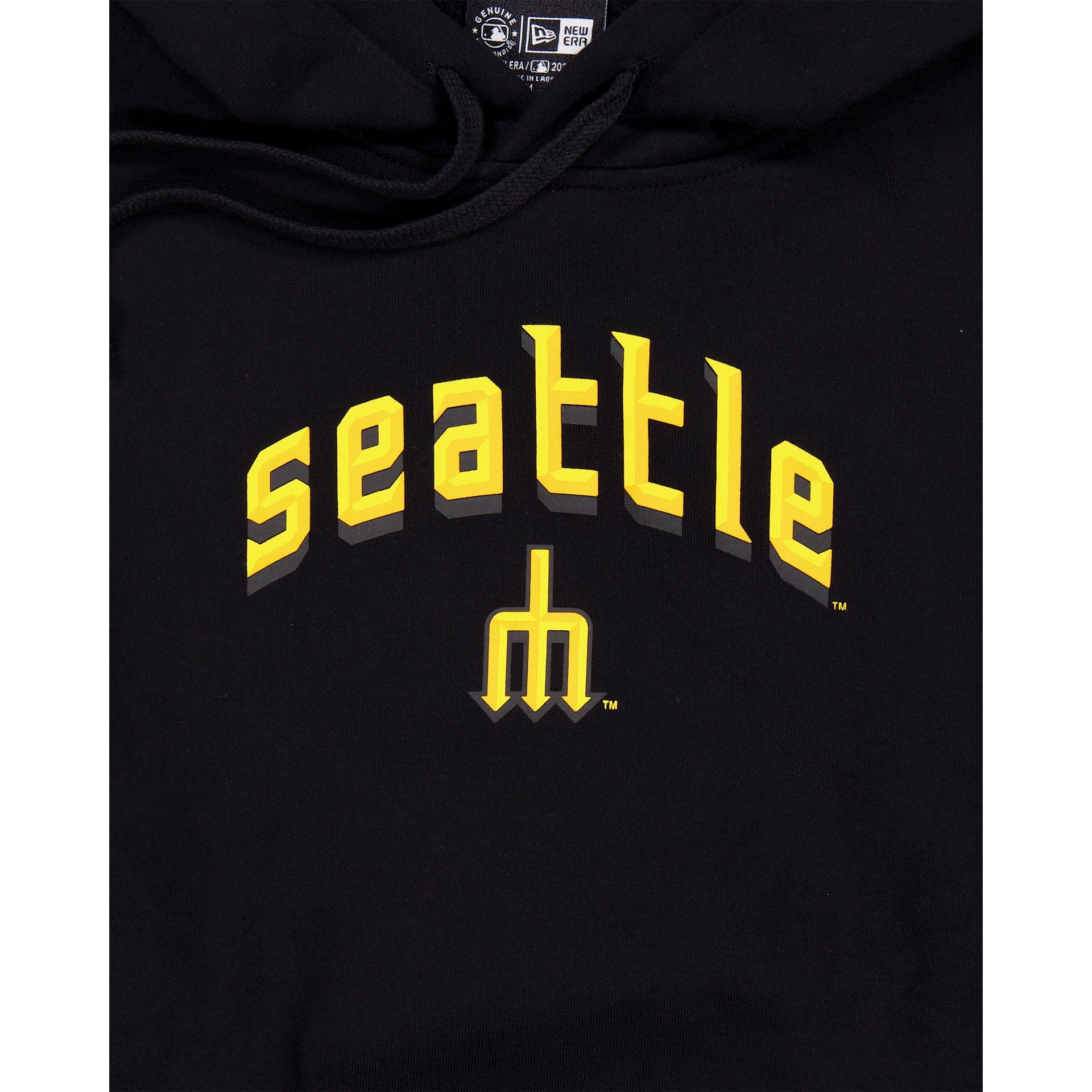 Jersey inspired. city connected. The Seattle Mariners City Connect Women’s Hoodie features a screen-printed Mariners wordmark and logo at the front with alternate team logos at the left sleeve.