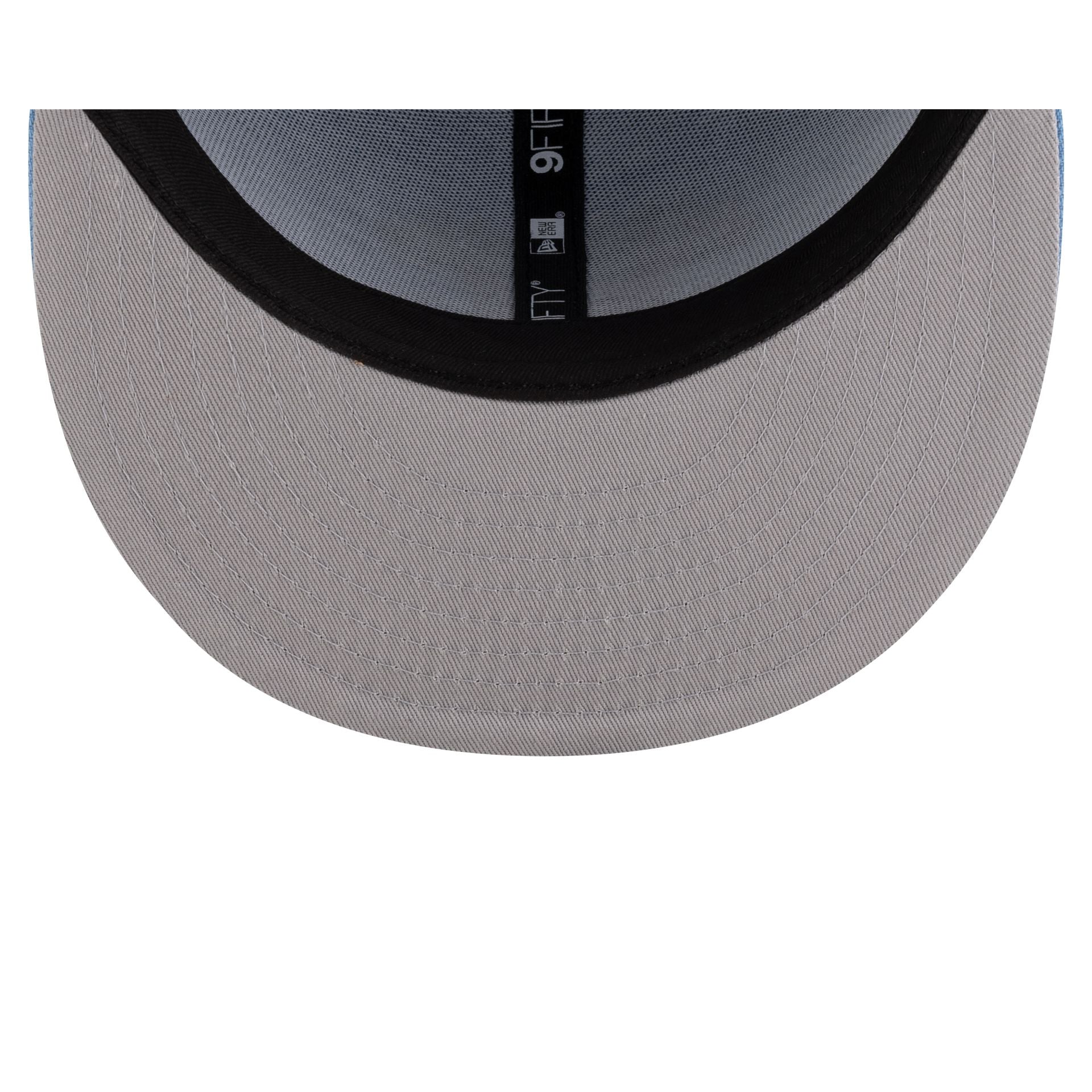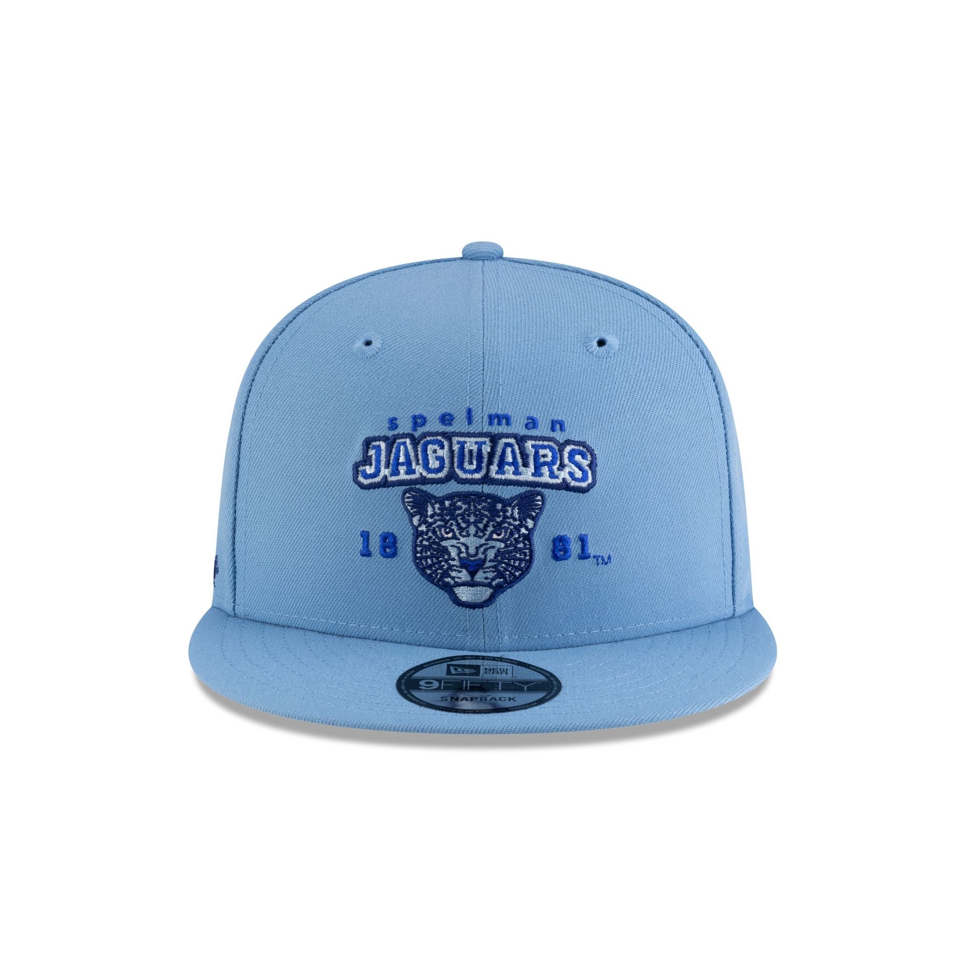The Spelman Jaguars Sky Blue 9FIFTY Snapback Cap features an embroidered Jaguars logo at the front panels with a team wordmark at the right-wear side. a snapback closure at the rear. and a gray undervisor.