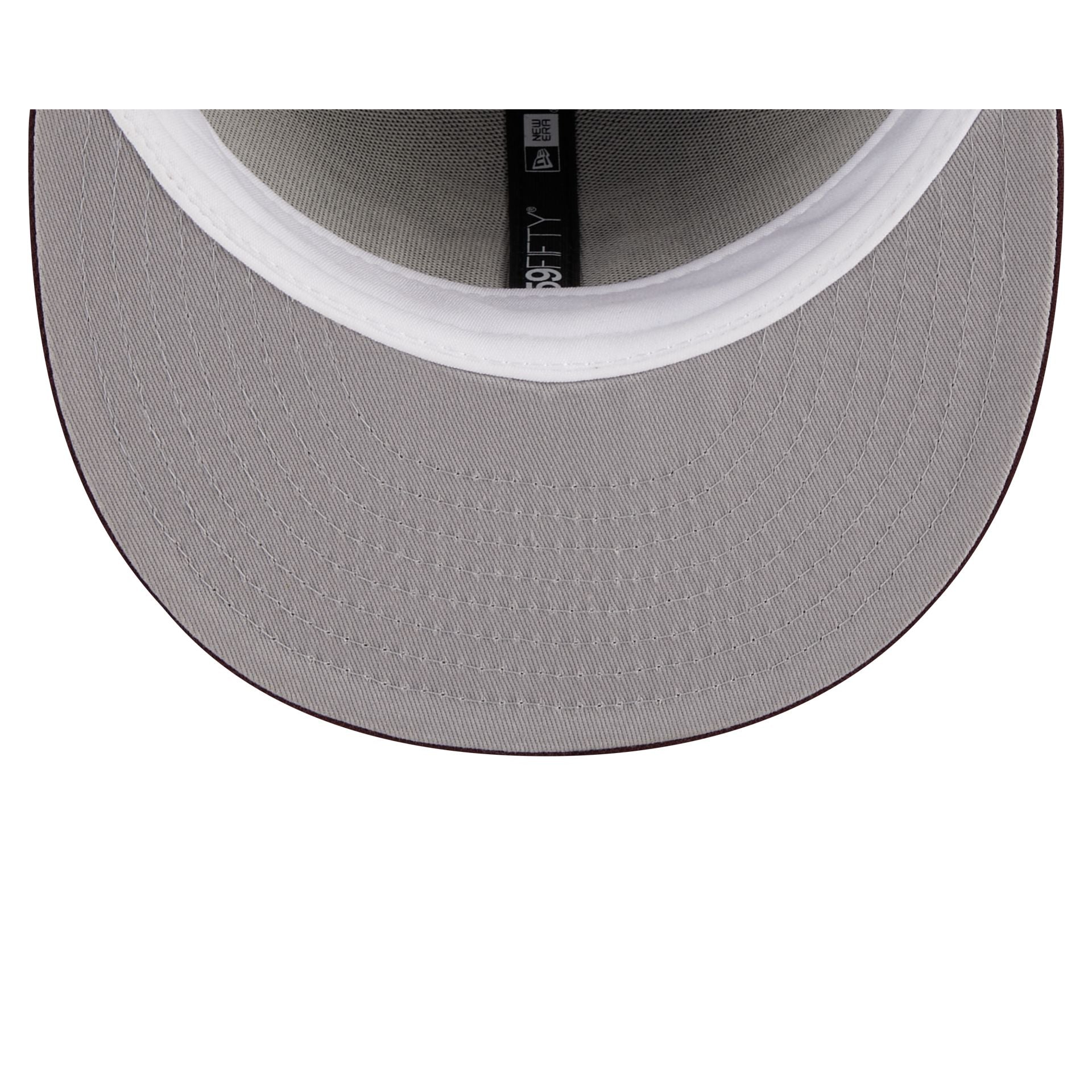 The Texas A&M Aggies Maroon 59FIFTY Fitted Cap features an embroidered Aggies logo at the front panels with a matching team wordmark at the rear and a gray undervisor.