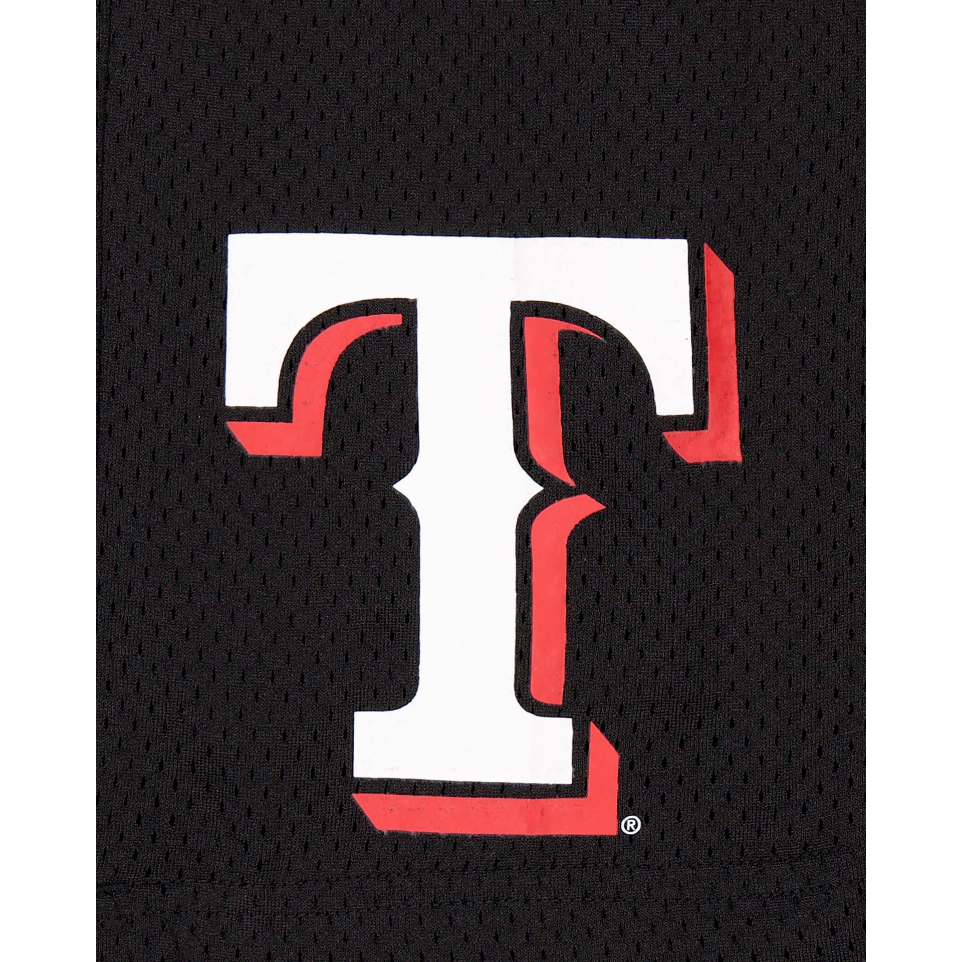 The Texas Rangers Mesh Shorts features a screen-printed Rangers logo at the left leg with a team wordmark at the right leg.