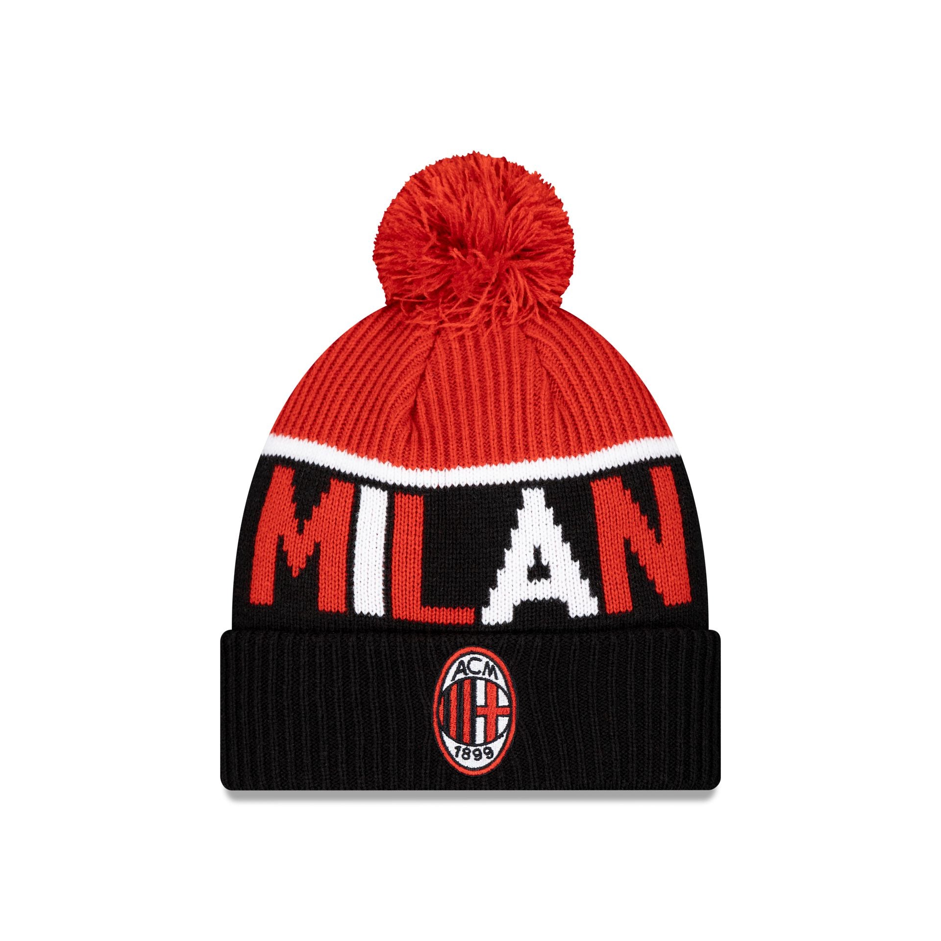 The AC Milan Sport Black Pom Knit features an embroidered Milan logo at the front with a Milan 1899 wordmark at the crown and a one-time removable pom.