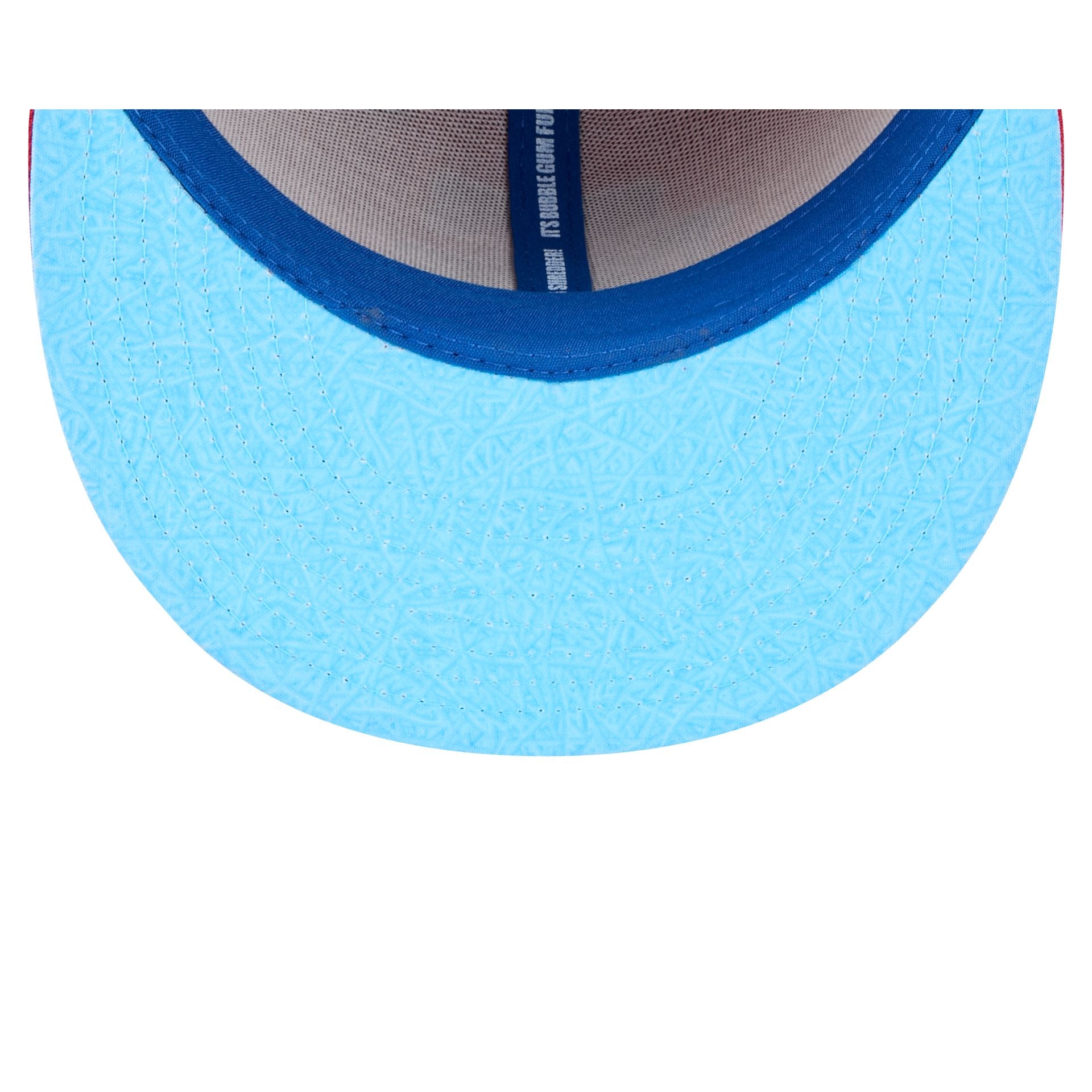 The Big League Chew x Philadelphia Phillies 59FIFTY Fitted Cap features an embroidered Phillies logo and a Big League Chew pin at the front panels with a matching MLB Batterman logo at the rear. Additional details include a Big Rally Blue Raspberry patch at the right-wear side and a blue visor.