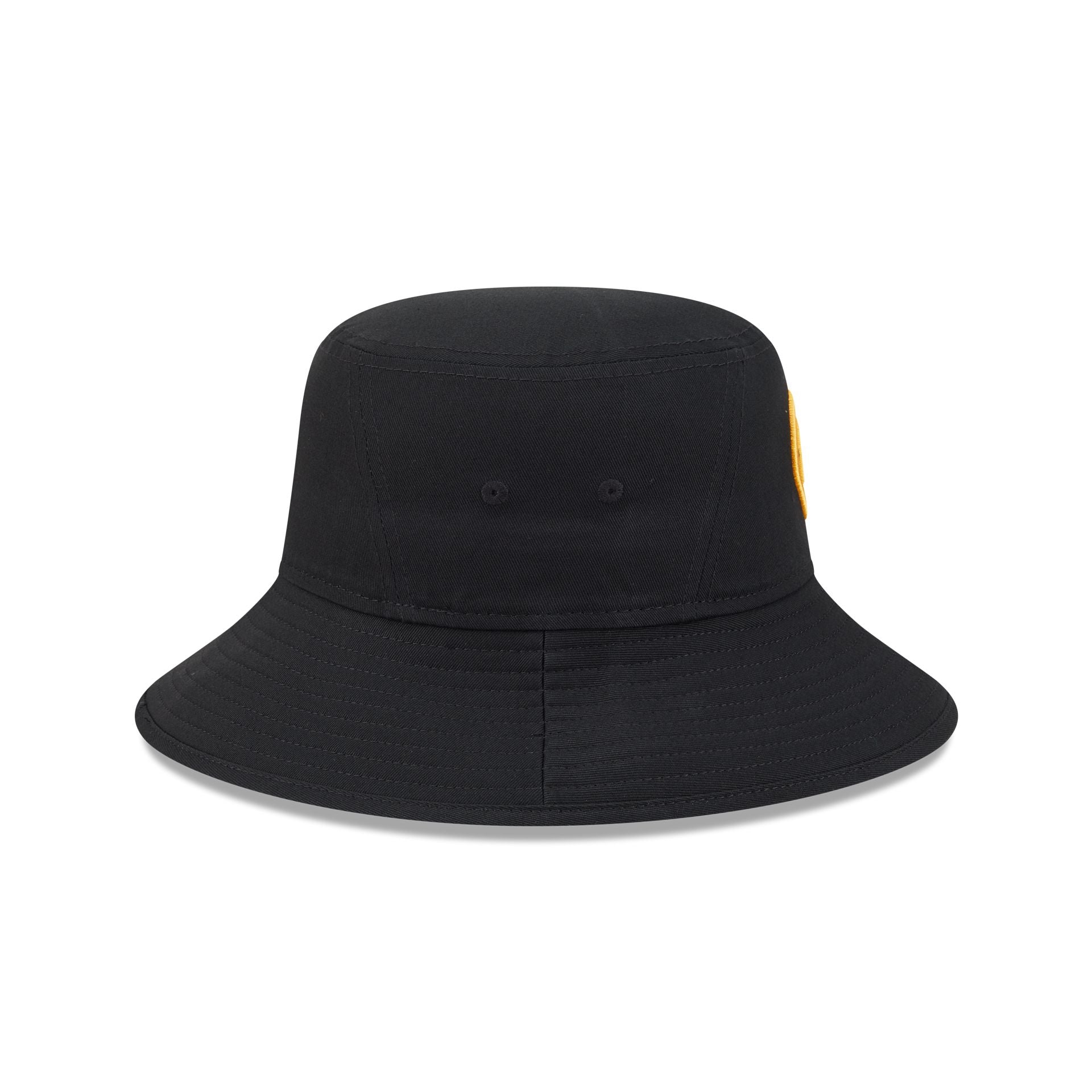 The Boston Bruins Team Color Bucket Hat features an embroidered Bruins logo at the front with a New Era Flag at the left-wear side.