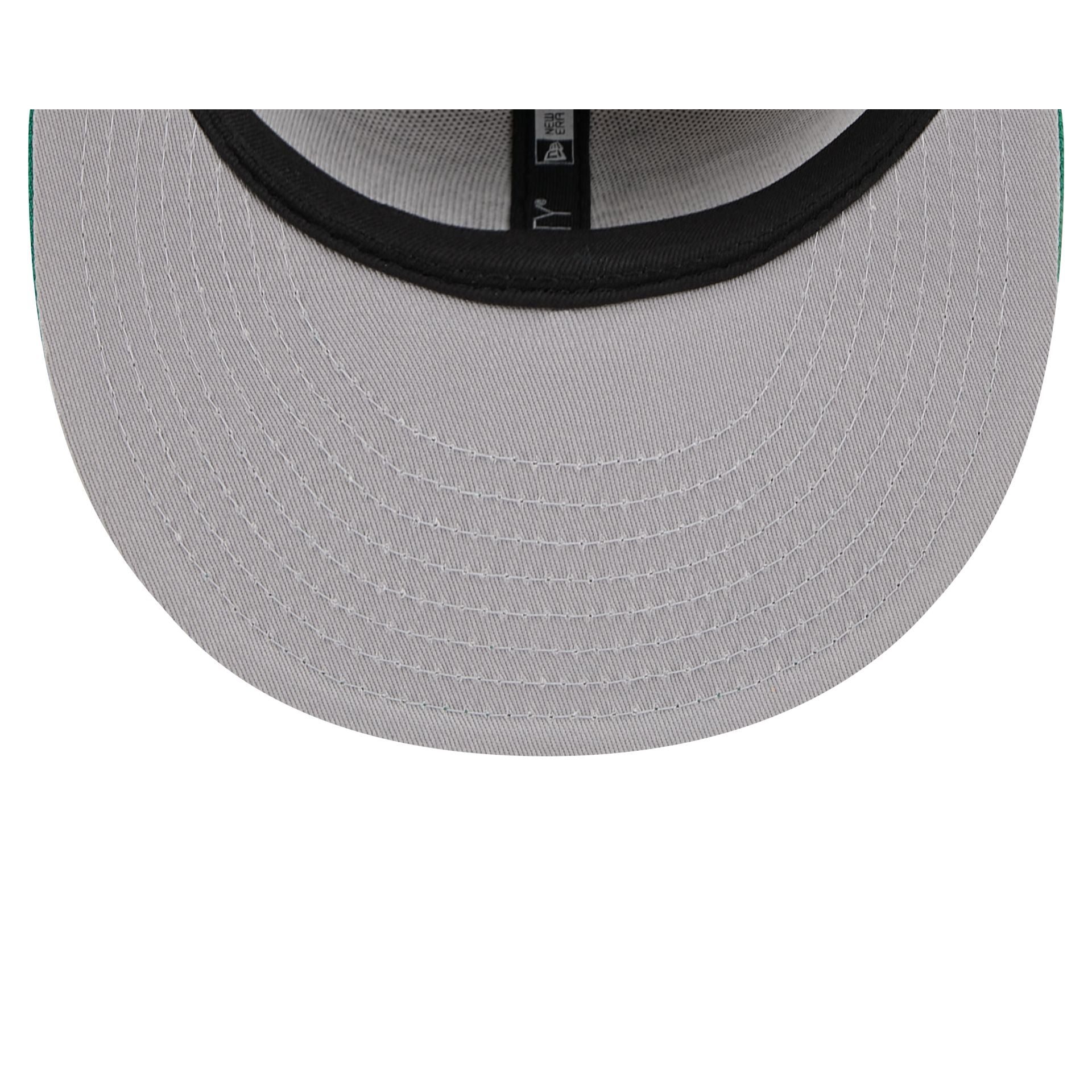 The Boston Celtics 2024 Draft 59FIFTY Fitted Cap features an embroidered Celtics logo and team wordmark at the front panels with the official NBA Logoman at the rear and a gray undervisor.