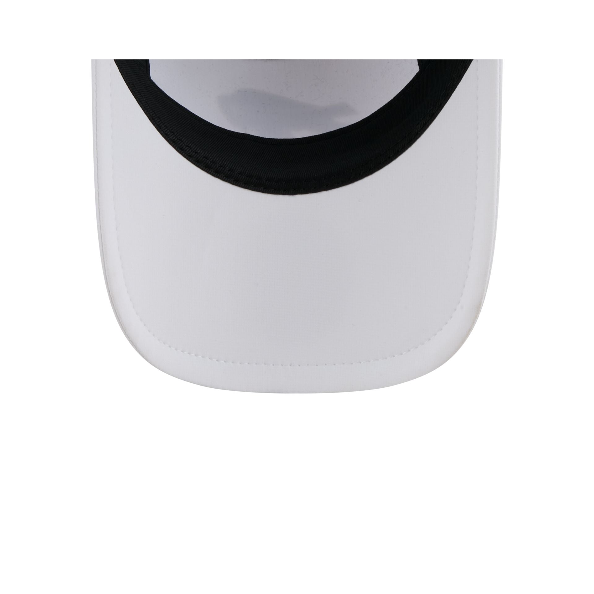 The Buffalo Bills White Poly Runner Cap features a heat sealed Bills logo at the front panels with mesh side panels. Additional details include a silicone patch above an adjustable drawstring closure at the rear.