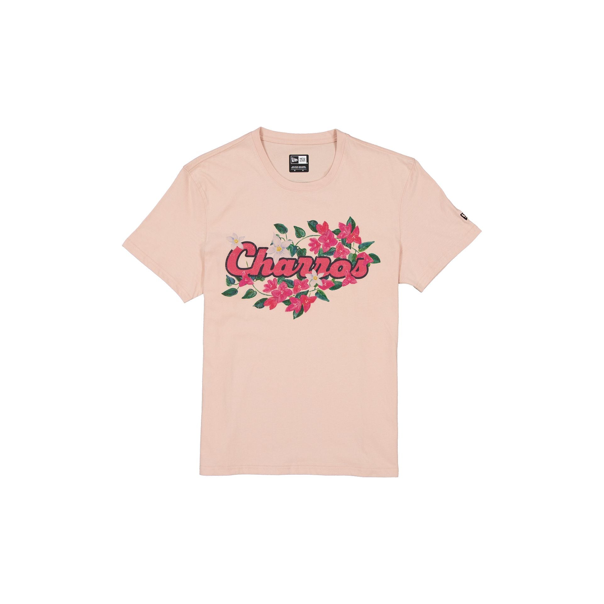 The Charros de Jalisco Pale Pink Floral T-Shirt features a screen-printed Charros floral wordmark at the front with a matching logo at the rear.