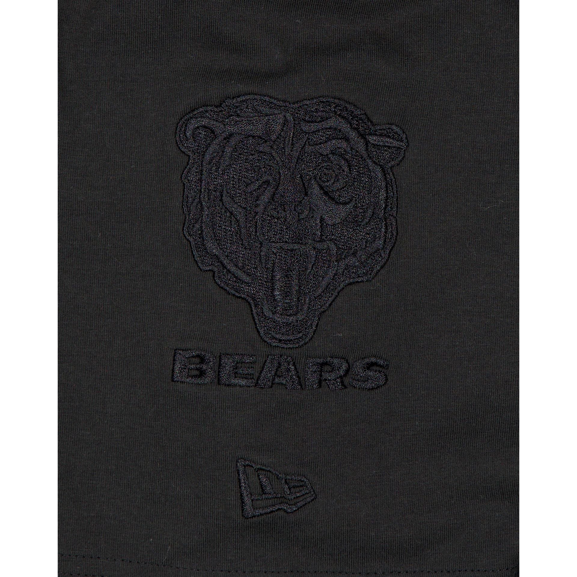The Chicago Bears Black on Black Logo Select T-Shirt features a satin applique with a tonal stitch Bears wordmark at the chest and an embroidered team logo at the left-wear sleeve.