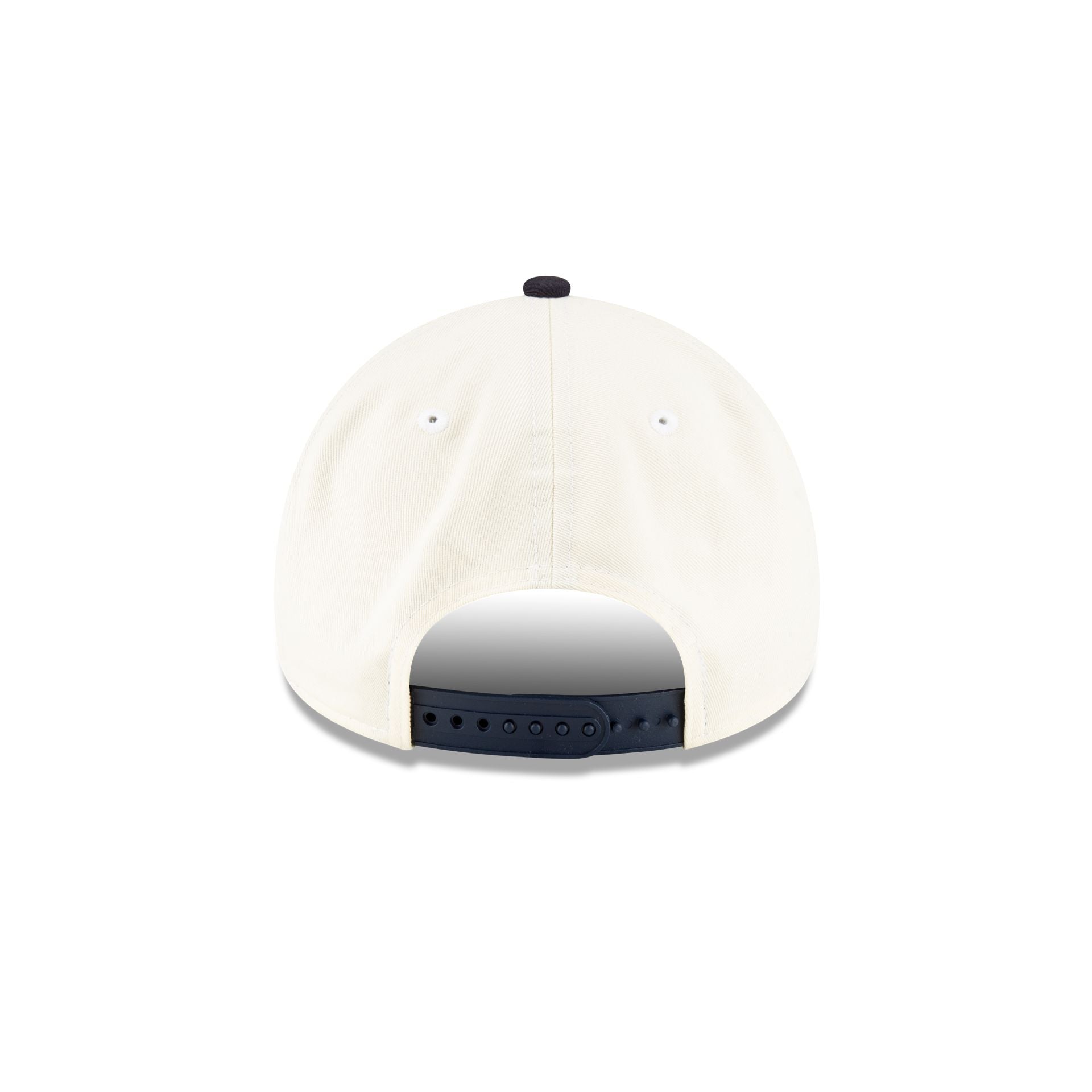 The Cleveland Guardians Mini Mascot 9FORTY A-Frame Snapback features an embroidered Guardians mascot at the front panels with a Progressive Field patch at the right-wear side and a snapback closure at the rear.