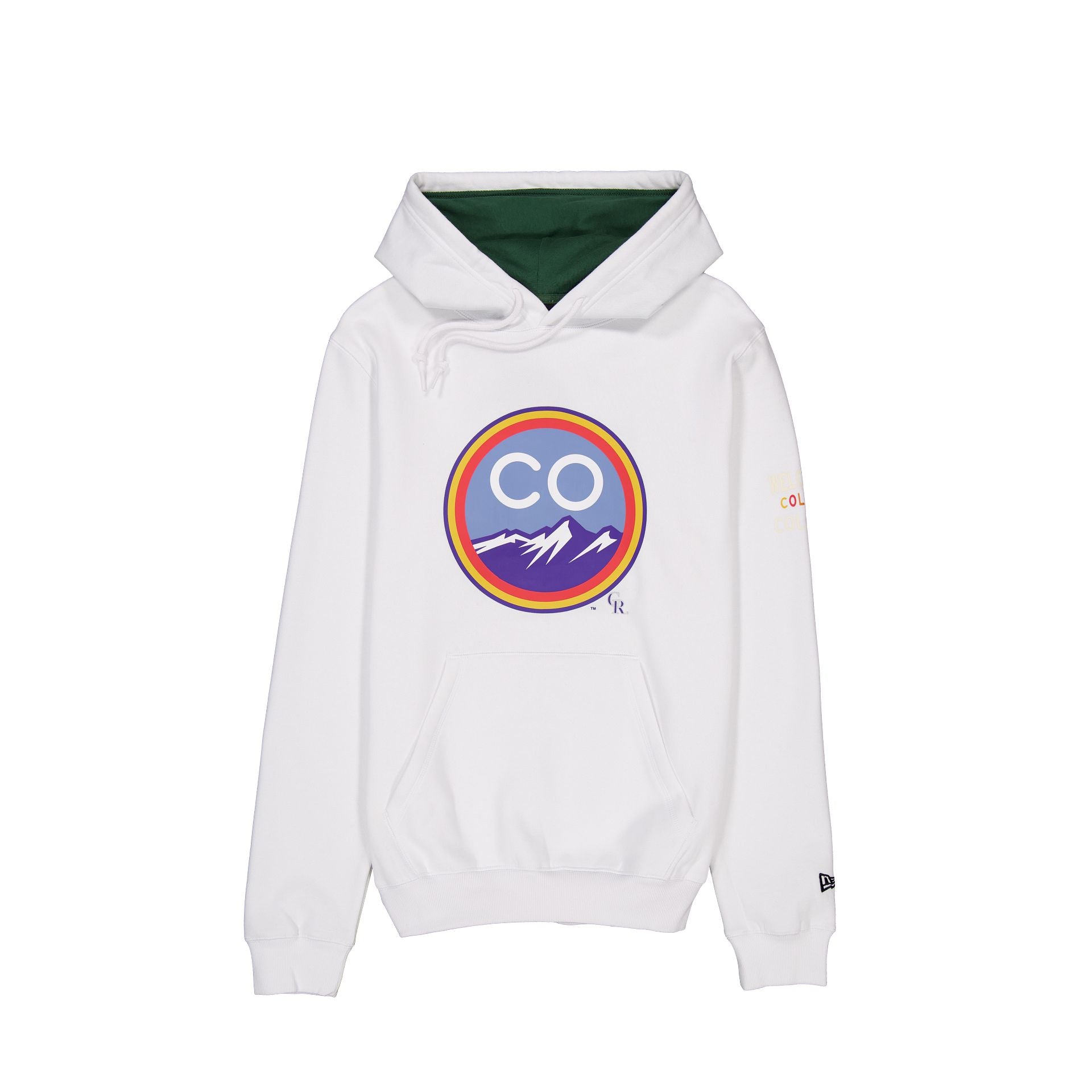 Jersey inspired. city connected. The Colorado Rockies City Connect White Hoodie features a screen-printed Rockies logo at the front with a Welcome To Colorado slogan at the left-wear sleeve.