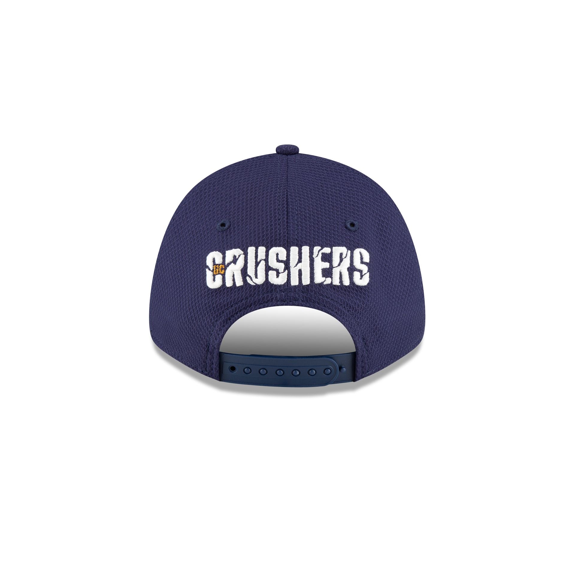 The Crushers GC 9FORTY Stretch Snap Cap features an embroidered Crushers GC logo at the front panels with a matching team wordmark above a snapback closure at the rear and a LIV Golf logo at the right-wear side.