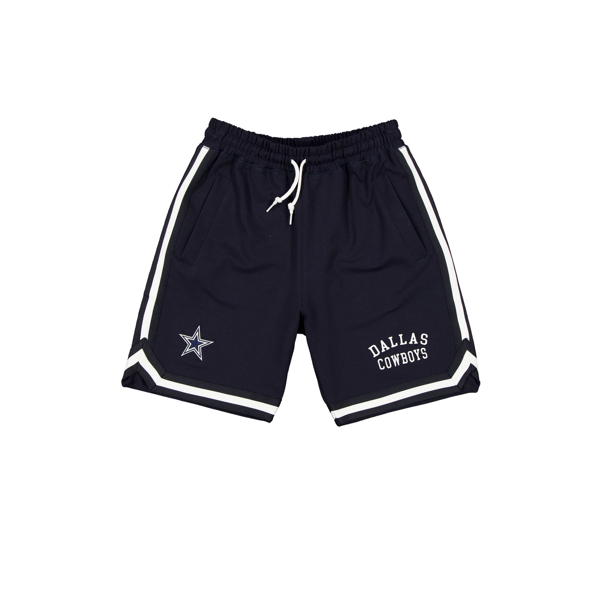 The Dallas Cowboys Team Color Logo Select Shorts features an embroidered Cowboys logo at the right leg with a matching team wordmark at the left leg and a New Era Cap jock tag at the rear pocket.