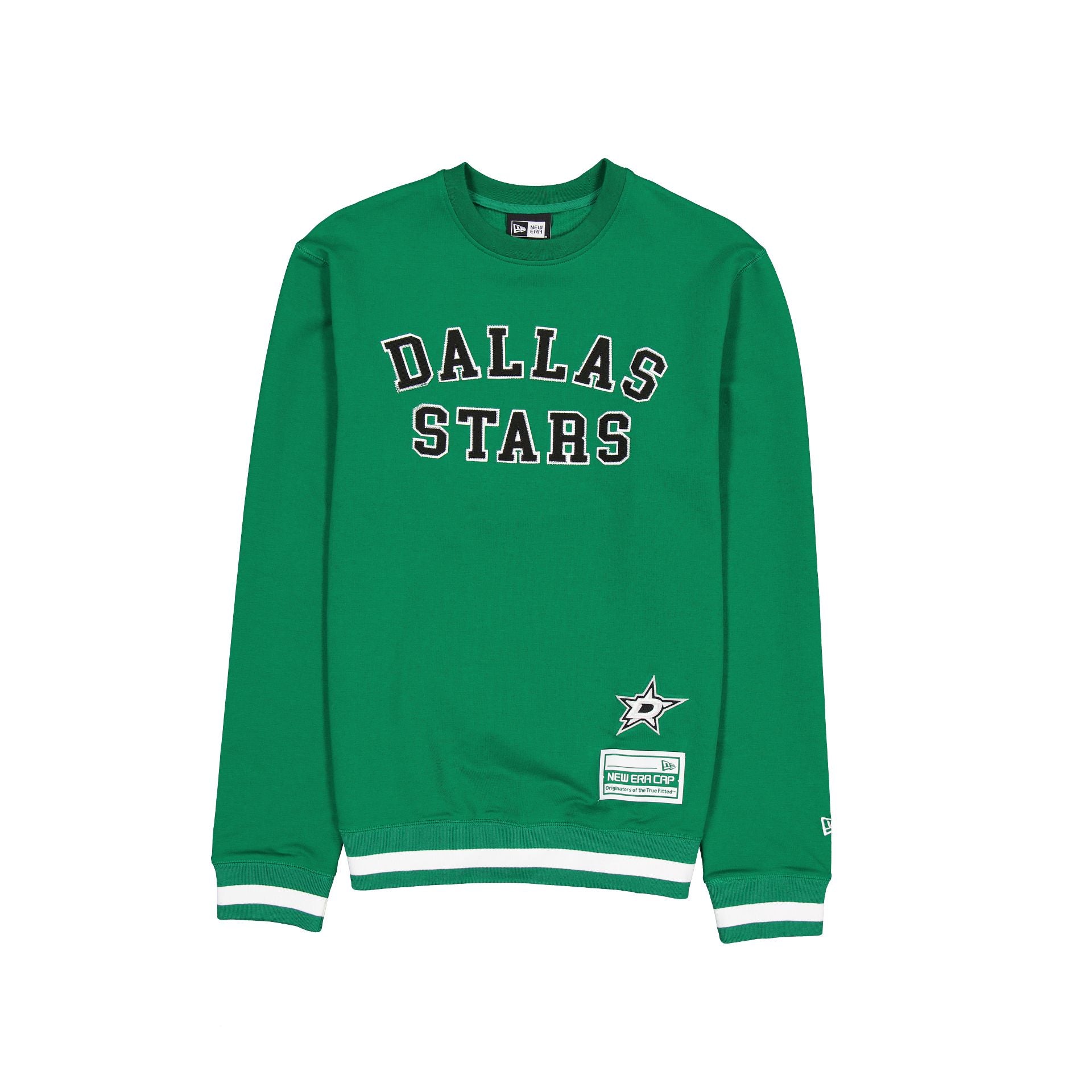 The Dallas Stars Team Color Logo Select Crewneck features a zig zag stitched twill applique Stars wordmark at the chest with an embroidered team logo above a New Era Cap jock tag at the left hip.