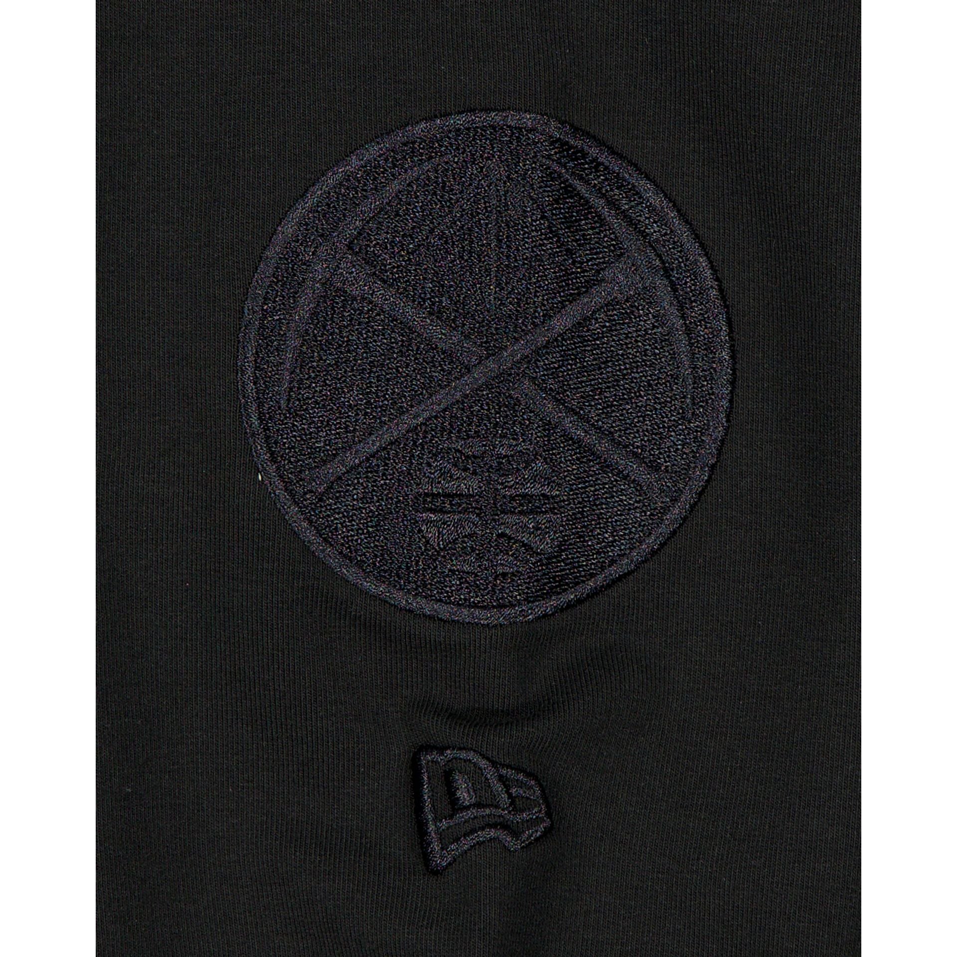 The Denver Nuggets Black on Black Logo Select Hoodie features a satin applique with a tonal stitch Nuggets wordmark at the chest and an embroidered team logo at the left-wear sleeve.