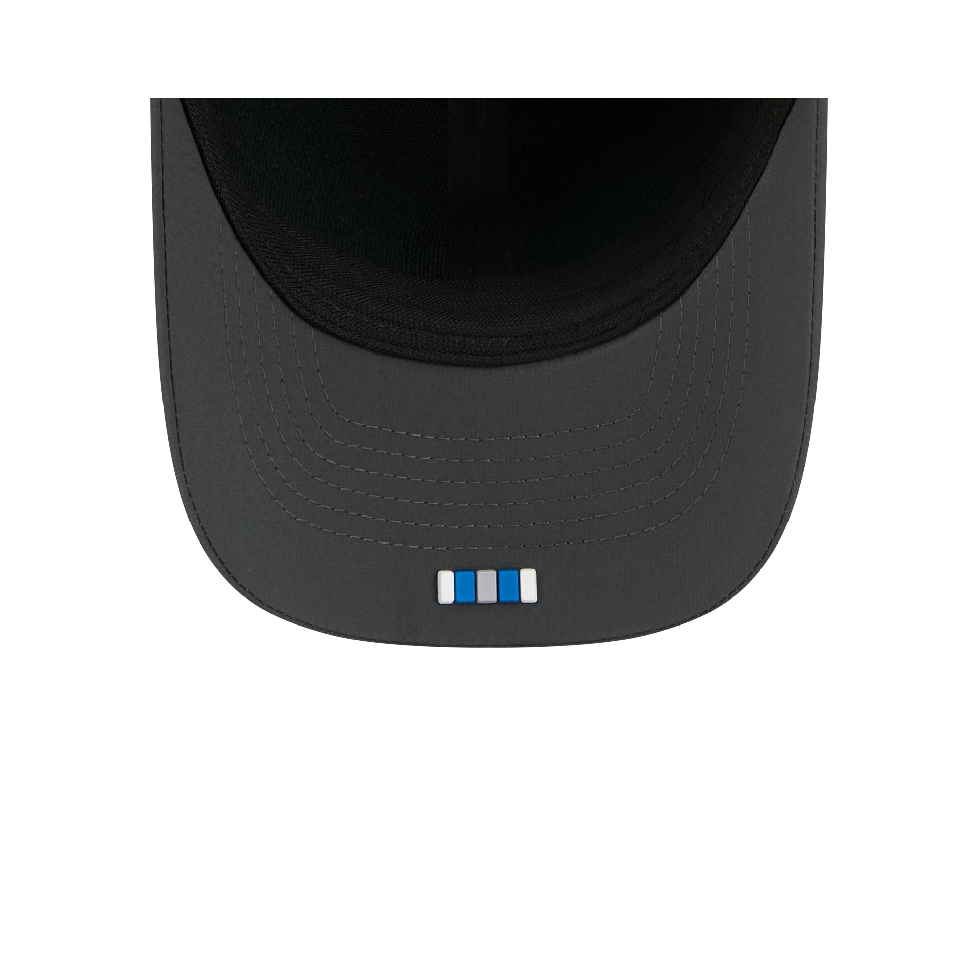 The Detroit Lions Sideline Cold Weather Steel Clouds Kids 9FORTY M-Crown Snapback features a sewn-down silicone Lions logo patch at the front panels with a water-repellent quill tech fabrication throughout and a quick-dry cushioned sweatband to absorb moisture. Additional details include the Official NFL Shield logo to the right of a soft silicone snapback closure at the rear. The crown has bonded seams to trap warmth and the undervisor is accented with a silicone transfer in the team’s colors.
