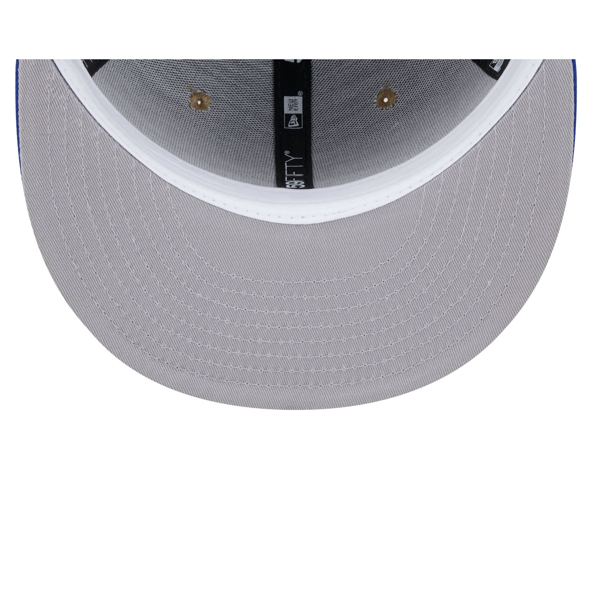 The Golden State Warriors Classic 8-Bit Wordmark 59FIFTY Fitted Cap featured an embroidered Warriors 8-bit stitch wordmark at the front panels. Additional details include a team wordmark with a matching MLB Batterman logo at the rear and a gray undervisor.