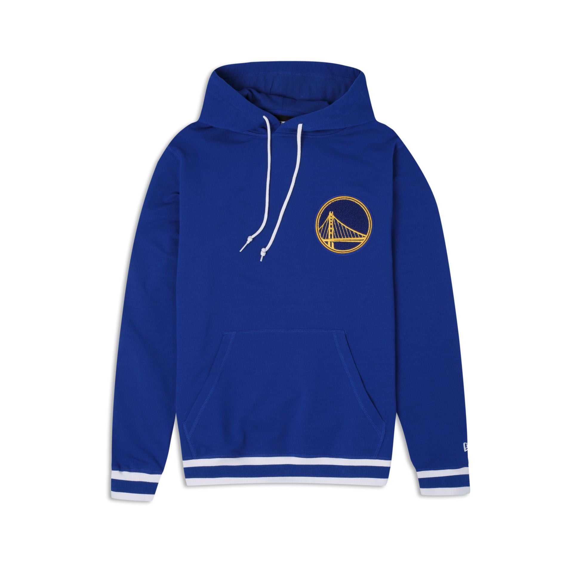 The Golden State Warriors Logo Select Hoodie features a chenille applique Warriors logo at the left chest with team patches at each sleeve and an embroidered team wordmark at the hood.