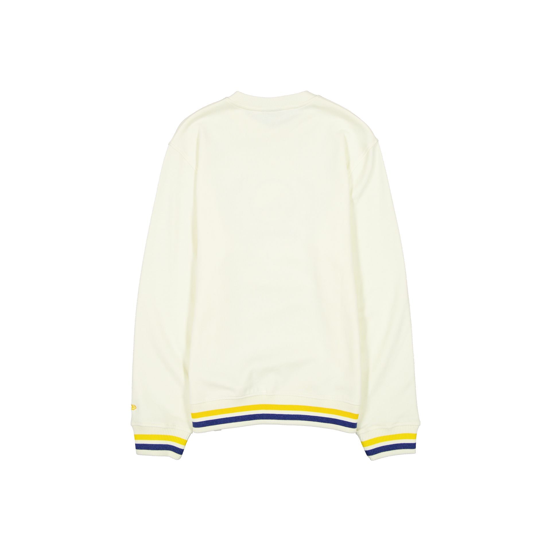 The Golden State Warriors Throwback Chrome White Crewneck features a twill applique Warriors logo and an embroidered wordmark at the front with a New Era jock tag at the left hip.
