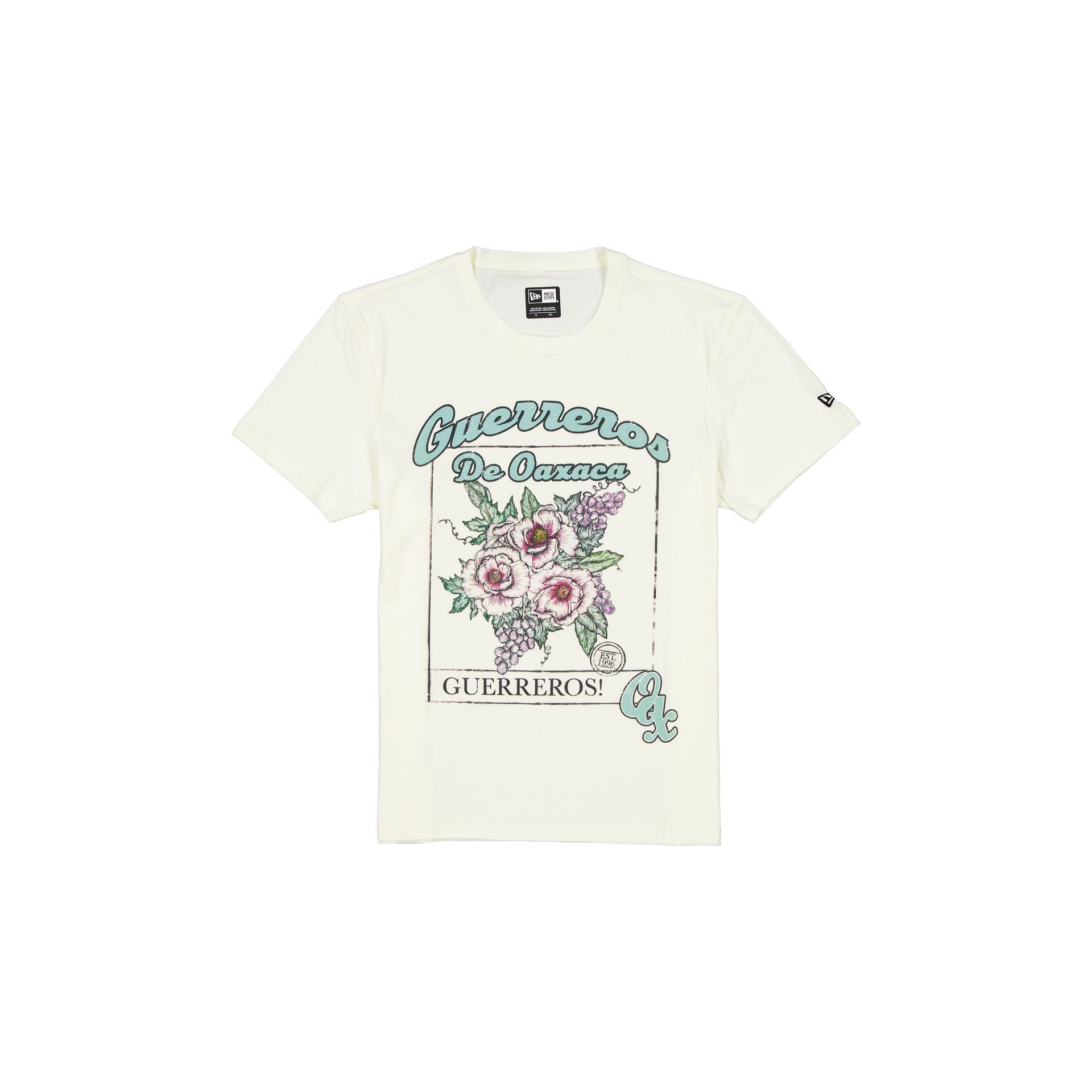 The Guerreros de Oaxaca Stone Floral T-Shirt features a screen-printed Guerreros floral graphic at the front.