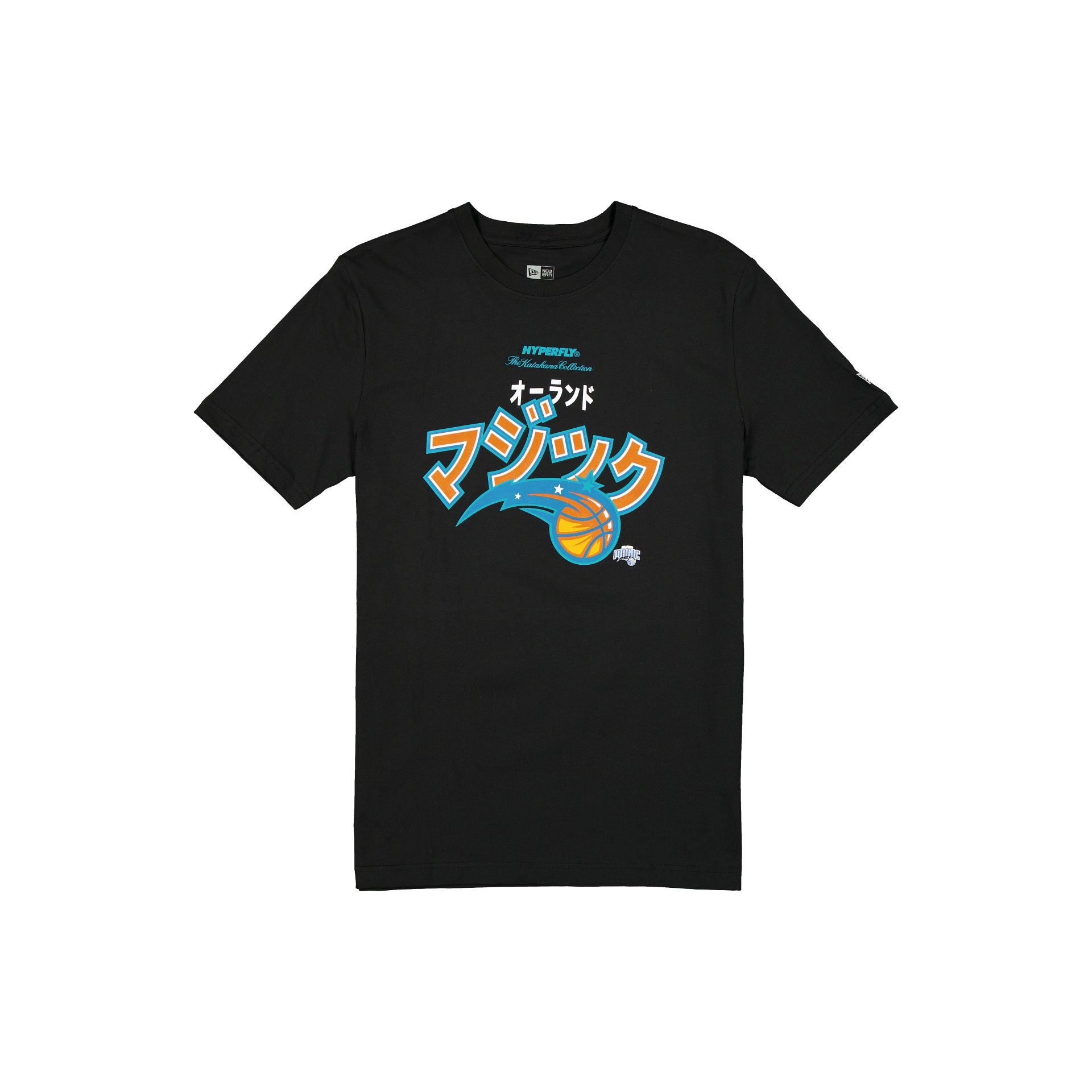 The Orlando Magic 2025 All-Star Game T-Shirt features a screen-printed Katakana-themed Magic graphic at the front.
