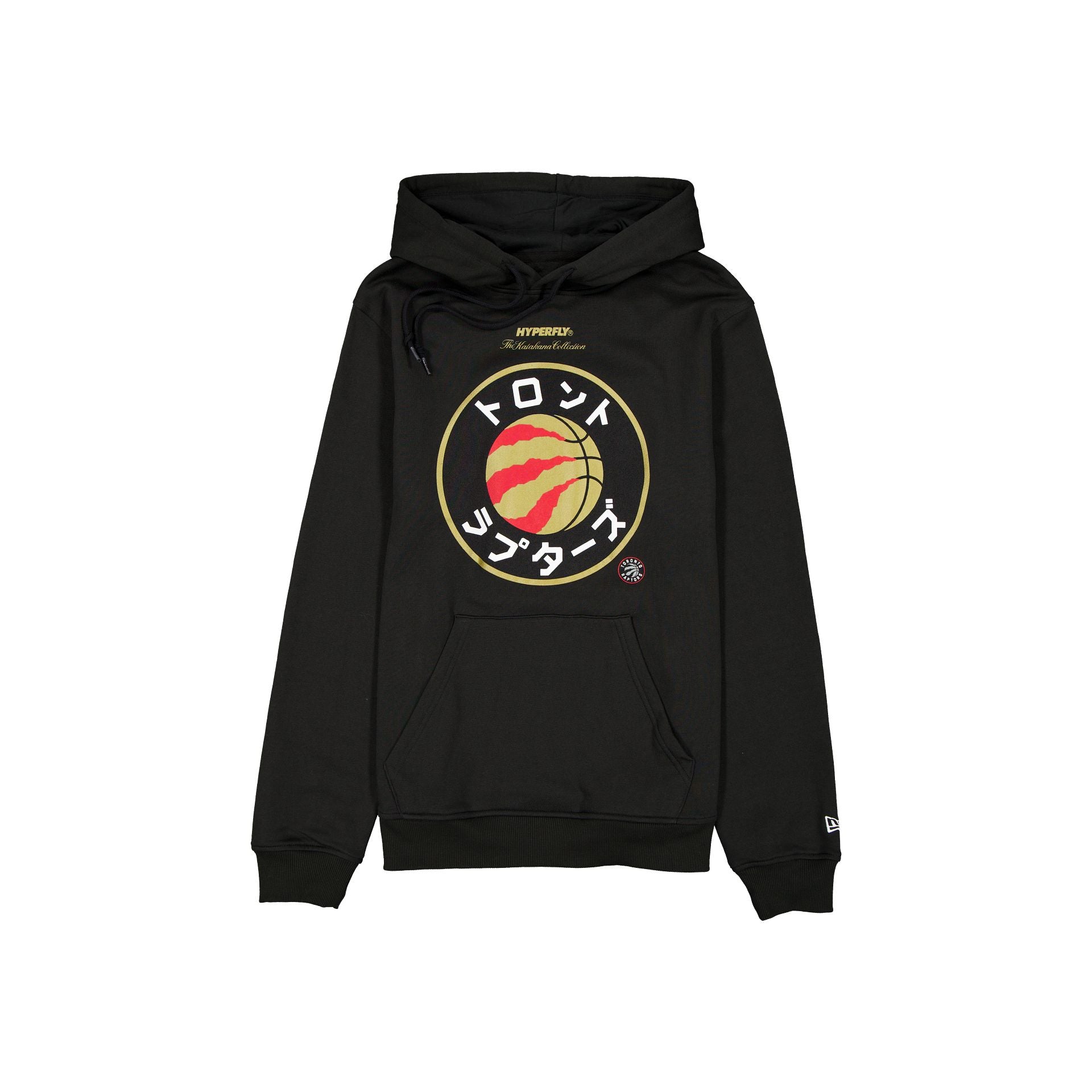 The Toronto Raptors 2025 All-Star Game Hoodie features a screen-printed Katakana-themed Raptors graphic at the front.