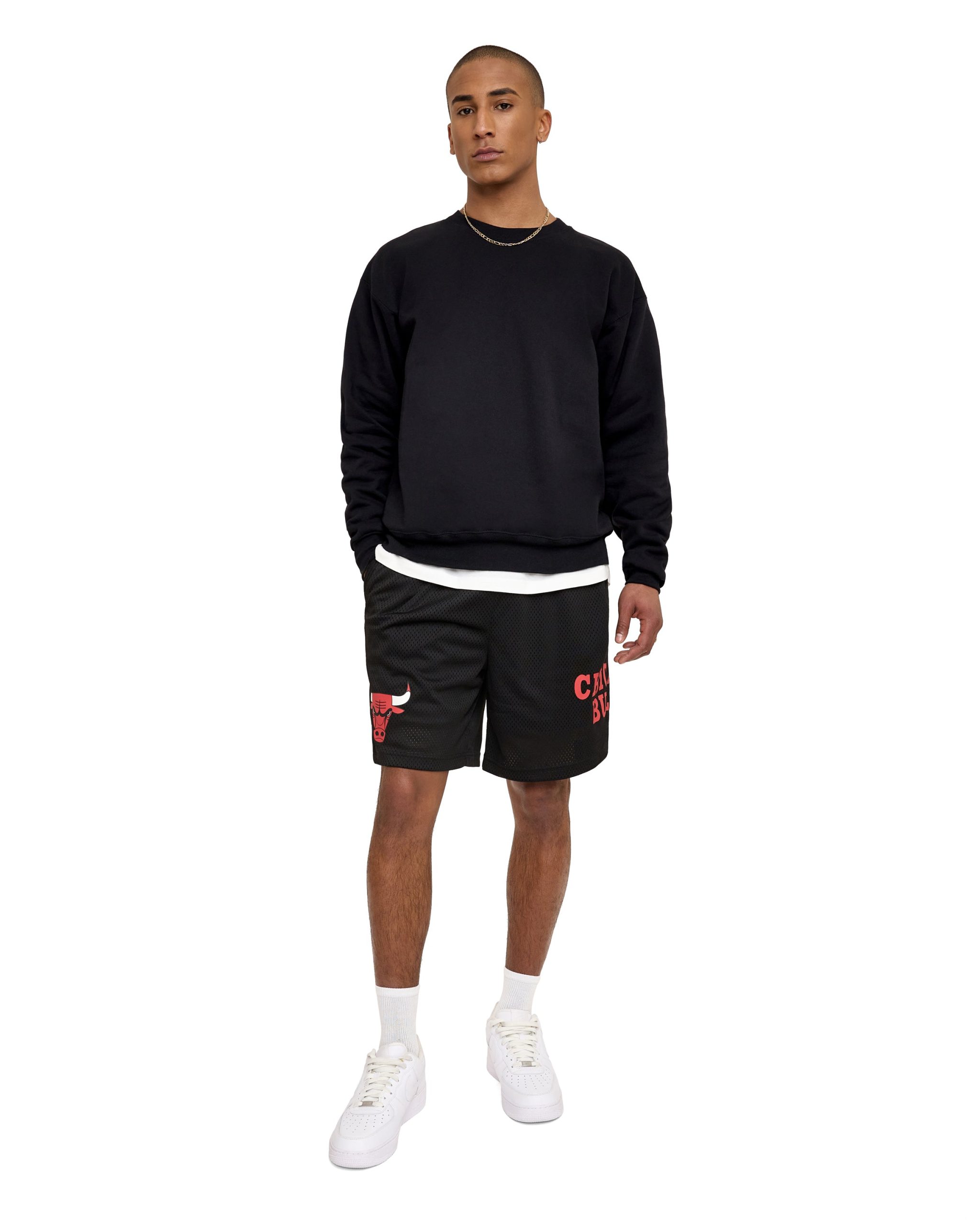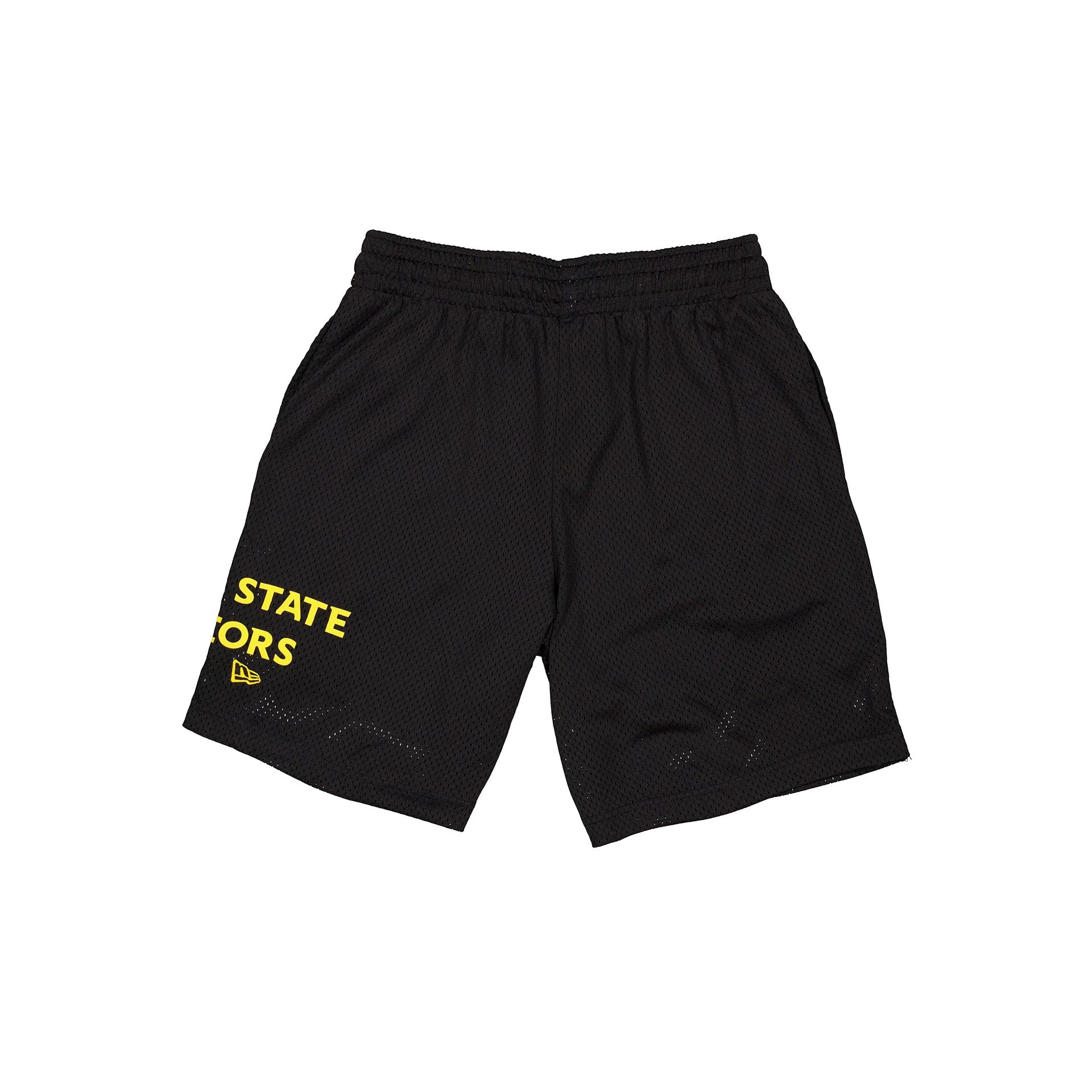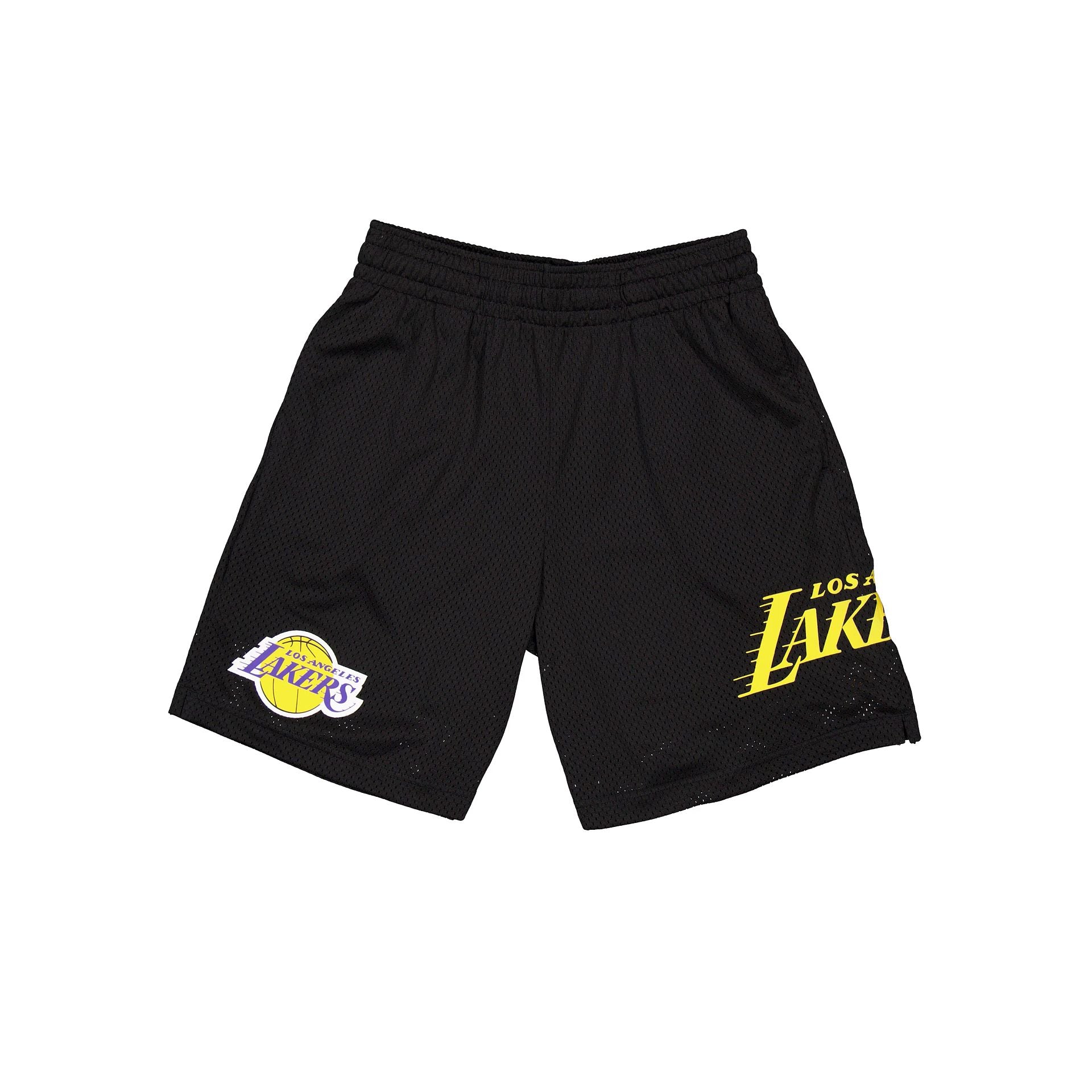 The Los Angeles Lakers Mesh Shorts features a screen-printed Lakers logo at the left leg with a team wordmark at the right leg.