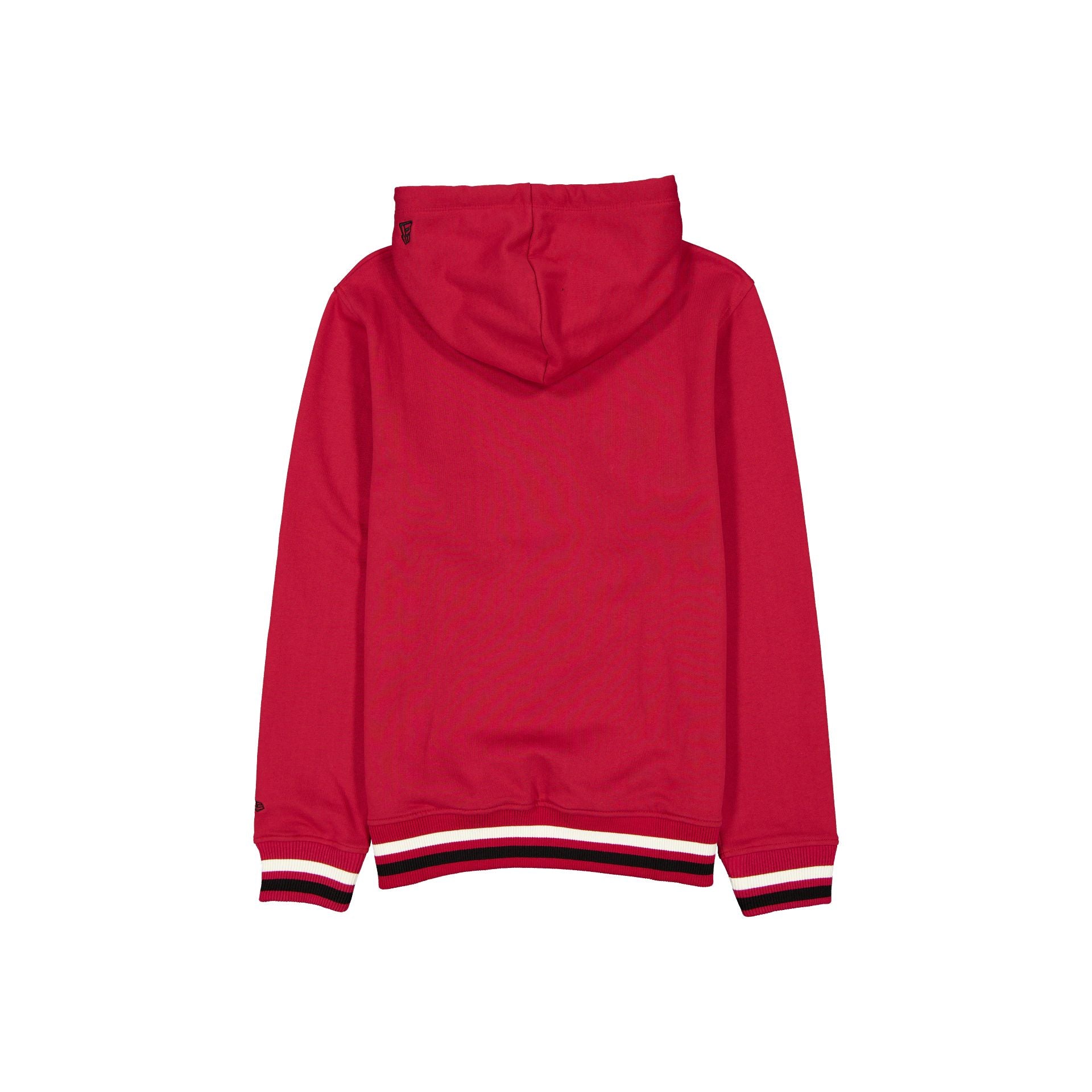 The Miami Heat Throwback Hoodie features a felt applique Heat wordmark at the front with kangaroo pockets. adjustable drawstrings at the hood. and a New Era jock tag at the left pocket.