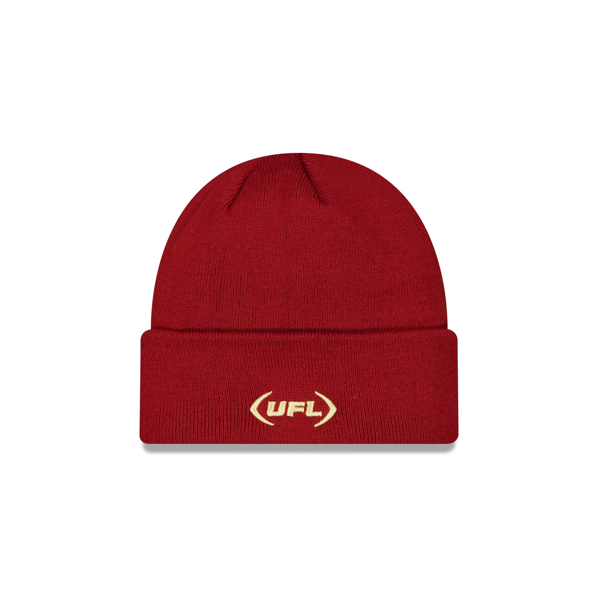 The Michigan Panthers Red Cuff Knit Beanie features an embroidered Panthers logo at the front cuff with a UFL logo at the rear.