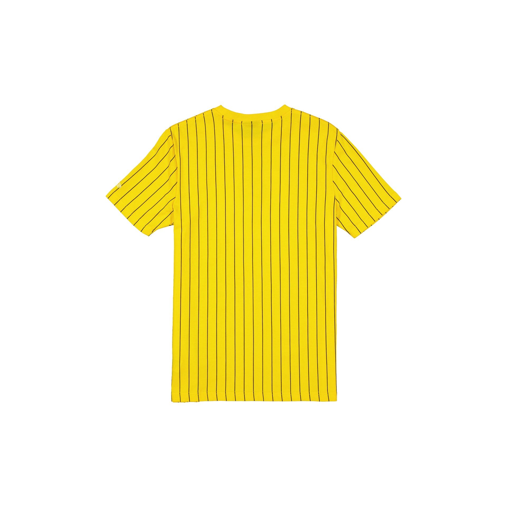 The Milwaukee Brewers Throwback Pinstripe T-Shirt features an embroidered Brewers logo and wordmark at the front with a New Era jock tag at the left hip.