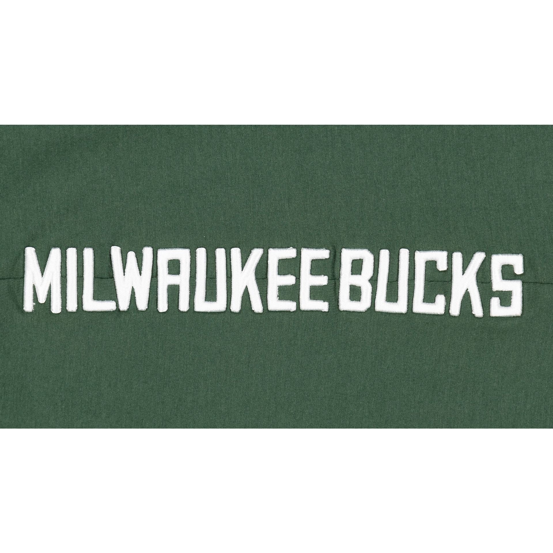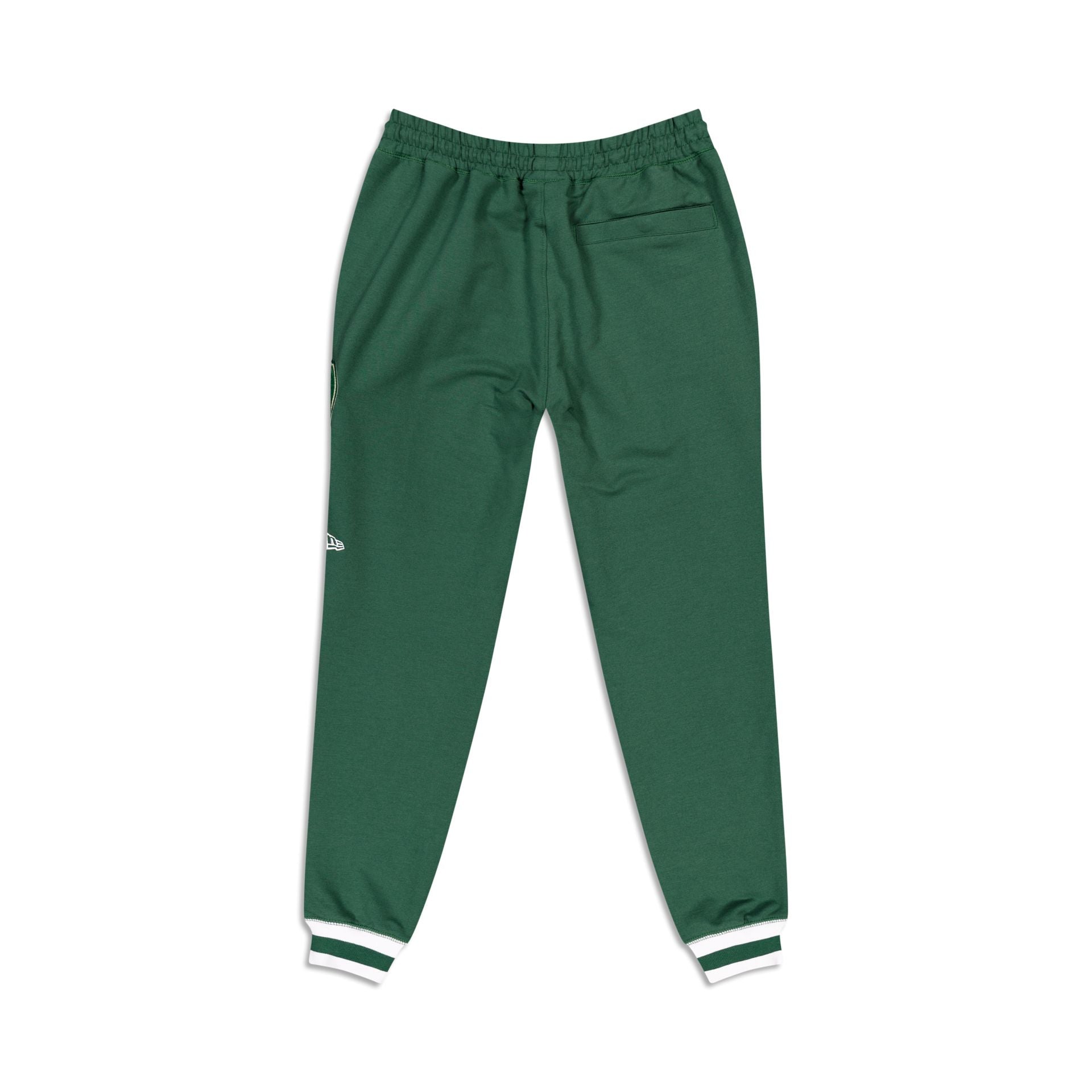The Milwaukee Bucks Logo Select Jogger features a chenille applique Bucks logo and embroidered wordmark at the left leg with an alternate team logo at the right ankle.